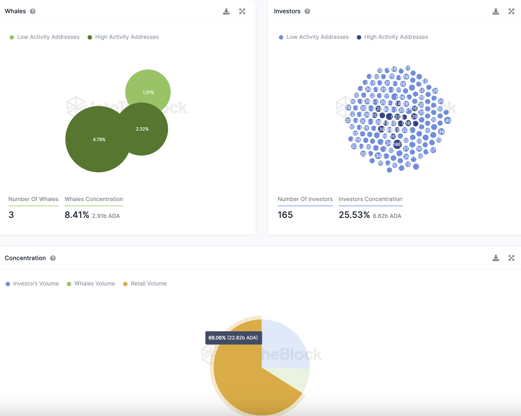 Sponsored SponsoredSo halten 165 Großinvestoren Adressen rund 25,53 % der ADA Token. Großinvestoren Adressen sind jene Adressen, die jeweils zwischen 0,1 % und 1 % der ADA Token Supply halten.