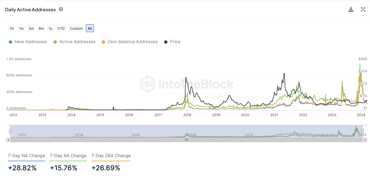 Darüber hinaus ist die Netzwerkaktivität wieder stark gestiegen. Zeigen die On-Chain Daten von IntoTheBlock noch weitere bullische Entwicklungen?