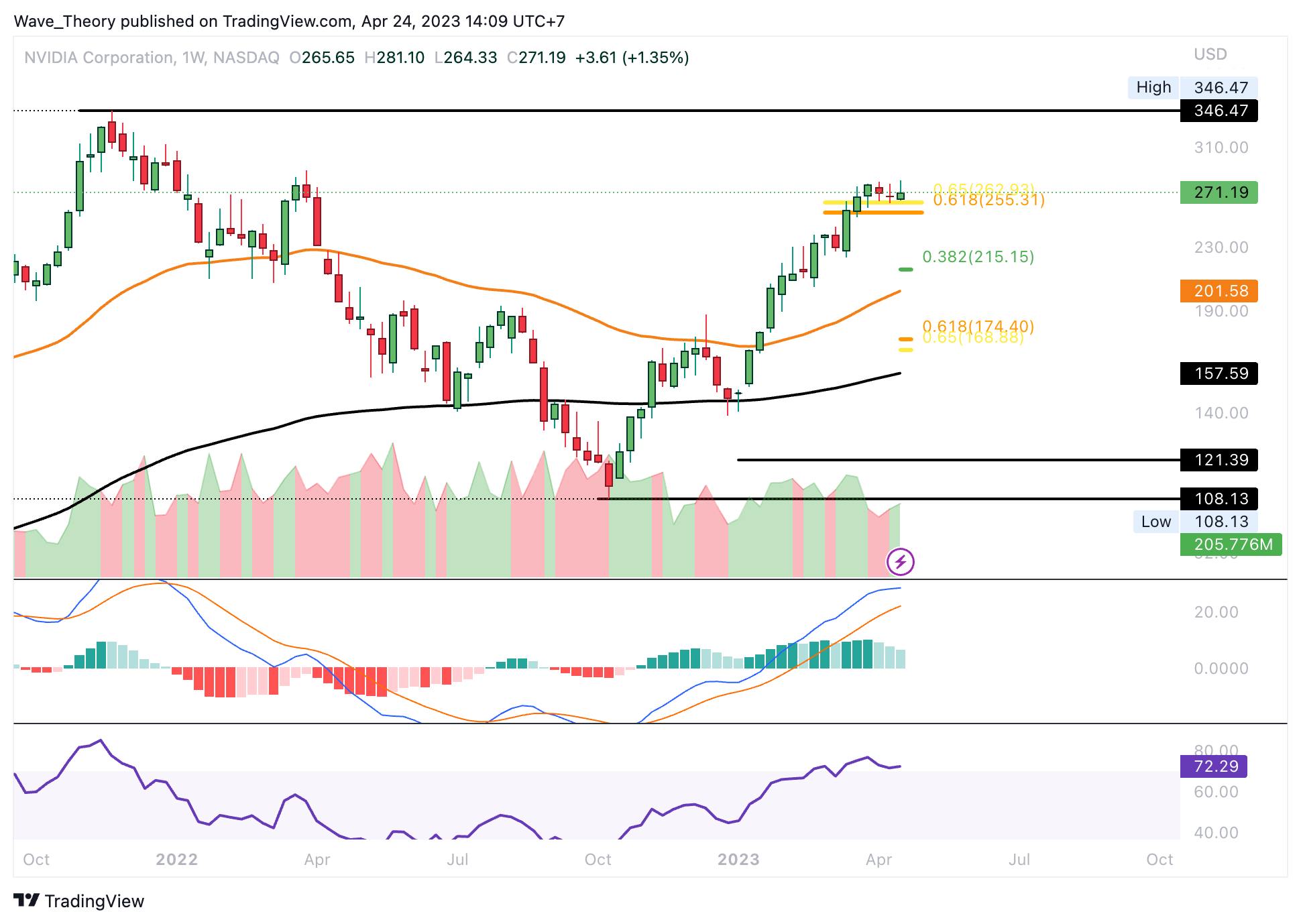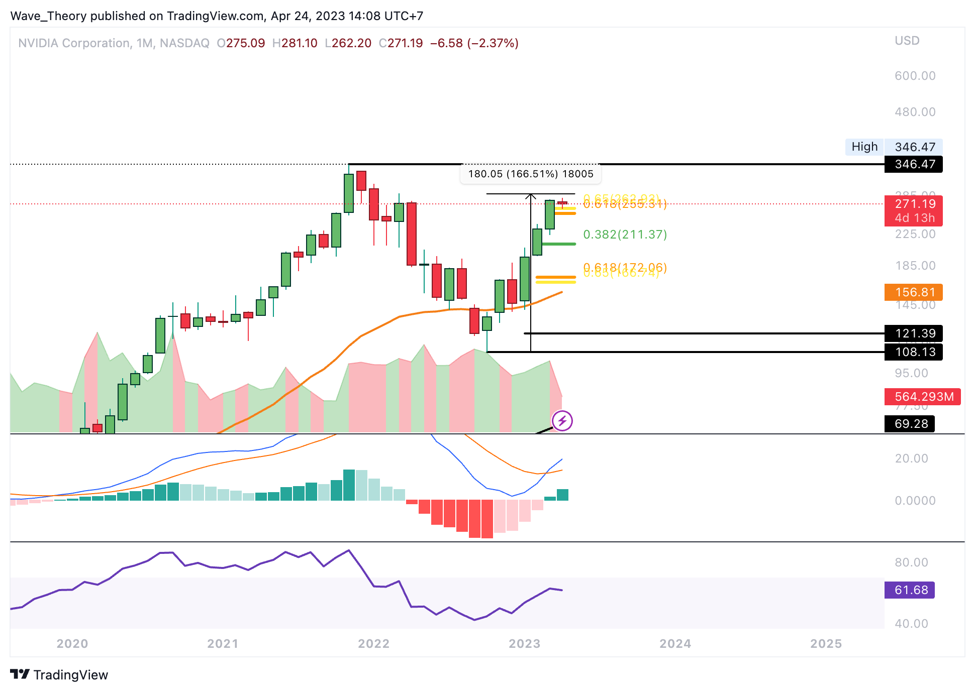 - Mit dem Bruch der Golden Ratio bei rund 264 USD befindet sich Nvidia in einem neuen Bullenzyklus.