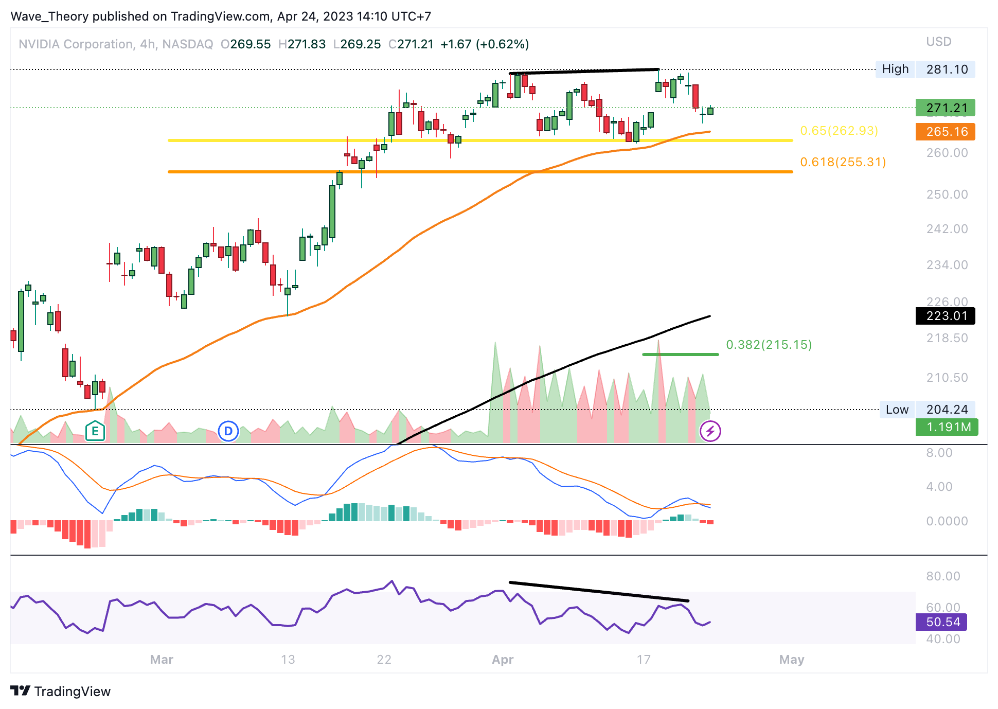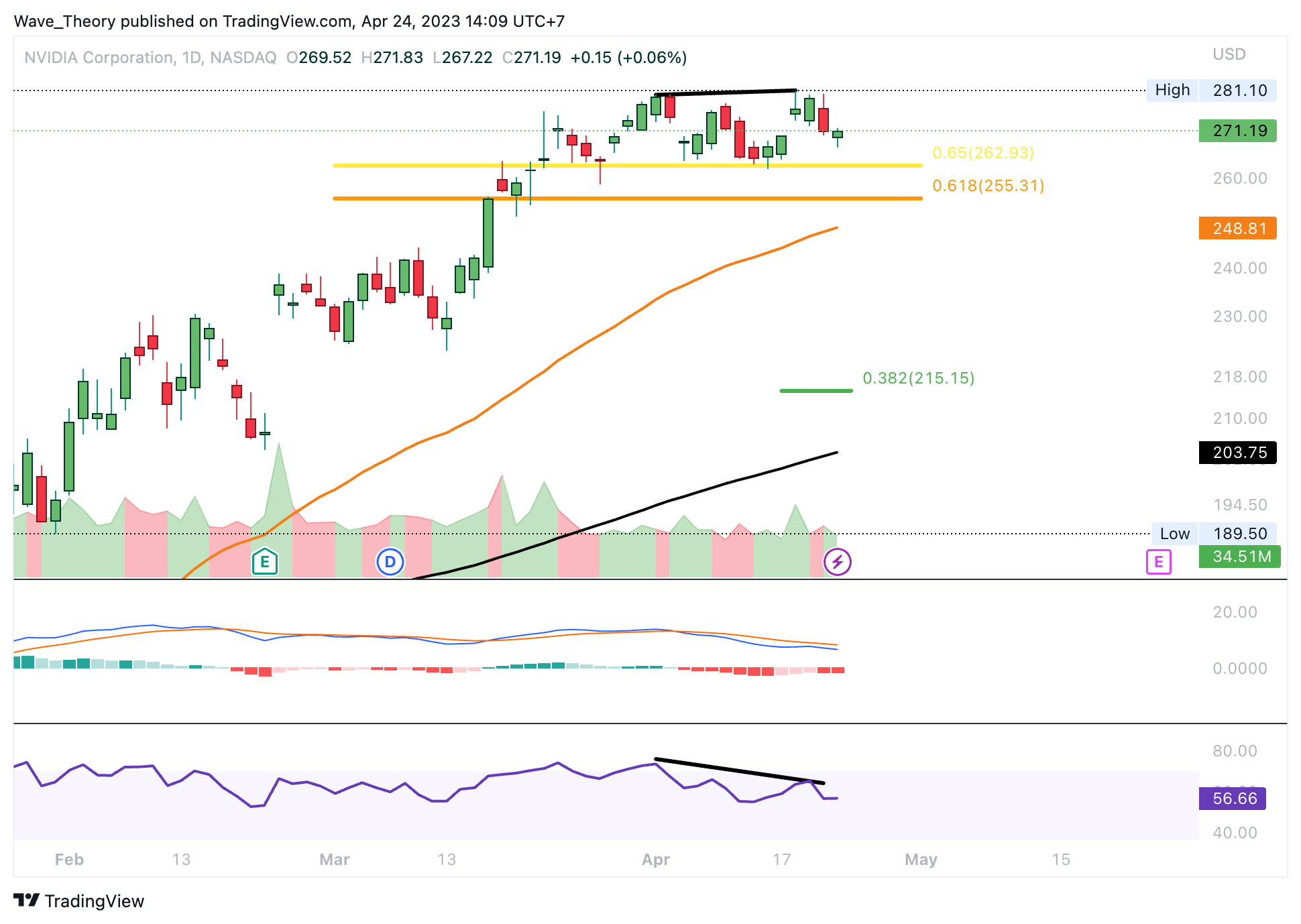 Dafür muss Nvidia aber zuerst die Golden Ratio bei rund 260 USD bärisch durchbrechen, welche bisher erfolgreich als Unterstützung halten konnte.