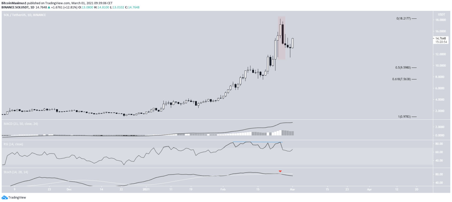 Danach ist der Kurs des Altcoin allerdings wieder deutlich gesunken. Die Tageskerze vom 25. Februar 2021 hat deswegen die Gestalt einer bärischen „engulfing Candelstick“. Nach solch einer Kerze kommt es meistens zu einer Korrekturphase.