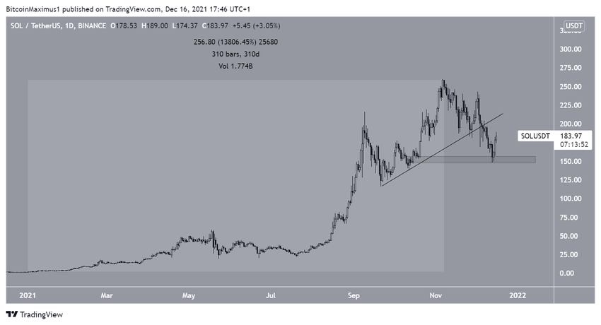 Es gibt auch auf Solana basierende NFT-Marktplatze an mehreren Börsen, wie z.B. an der Börse FTX. Diese Marktplätze werden es seinen Nutzern ermöglichen, nicht-fungible Token zu erstellen und zu handeln, die auf der Solana-Blockchain laufen. SOL ist seit Jahresbeginn um 13.806% gestiegen und erreichte am 4. November einen Rekordpreis von 259,9 US-Dollar. Von den untersuchten Kryptowährungen war dies die zweithöchste Wertsteigerung nach AXS. Obwohl der Kurs seither gefallen ist und seine Abwärtstrendlinie unterschritten hat, ist der Token an der horizontalen Unterstützung bei 150 US-Dollar abgeprallt.