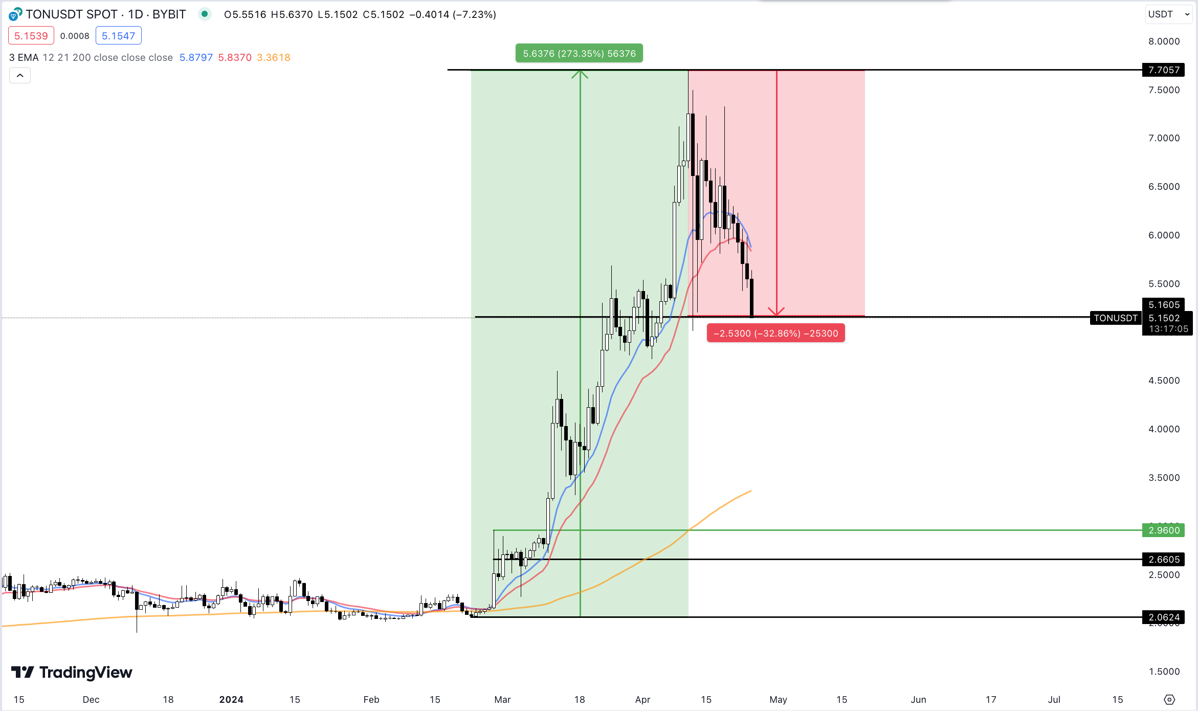 Im Februar 2024 begann die Kryptowährung eine Rallye um 273 Prozent von 2,06 USD auf 7,70 USD, kühlt seit einigen Tagen jedoch ab. So handelt sie aktuell zu einem Discount von immerhin 33 Prozent, könnte sich angesichts der bullischen Erfolge jedoch schnell wieder erholen.