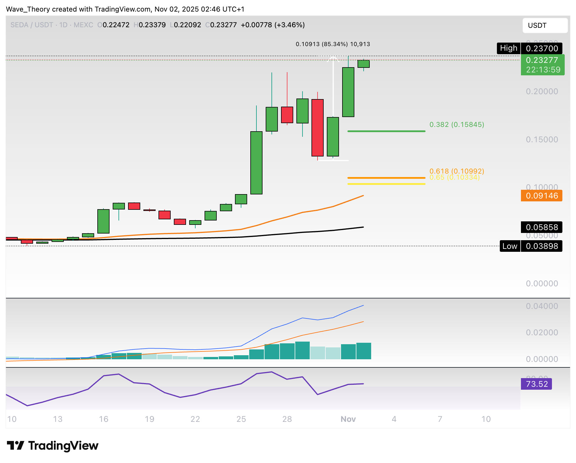 Sollte der SEDA Kurs jetzt korrigieren, warten bei rund 0,1585 USD und bei rund 0,109 USD die nächsten signifikanten Fibonacci Unterstützungen.