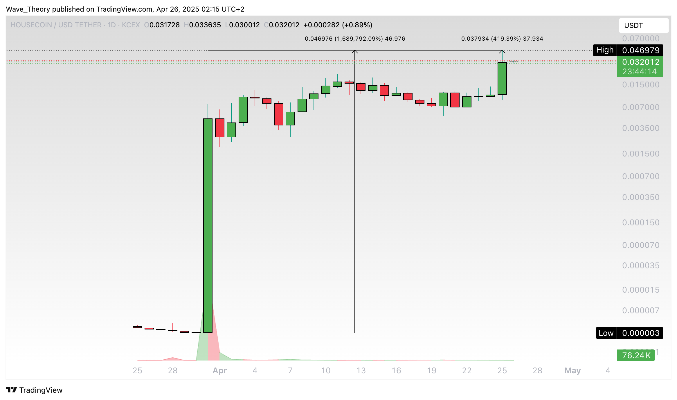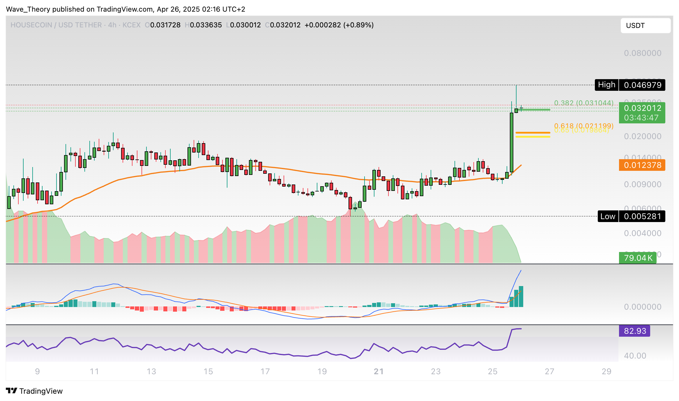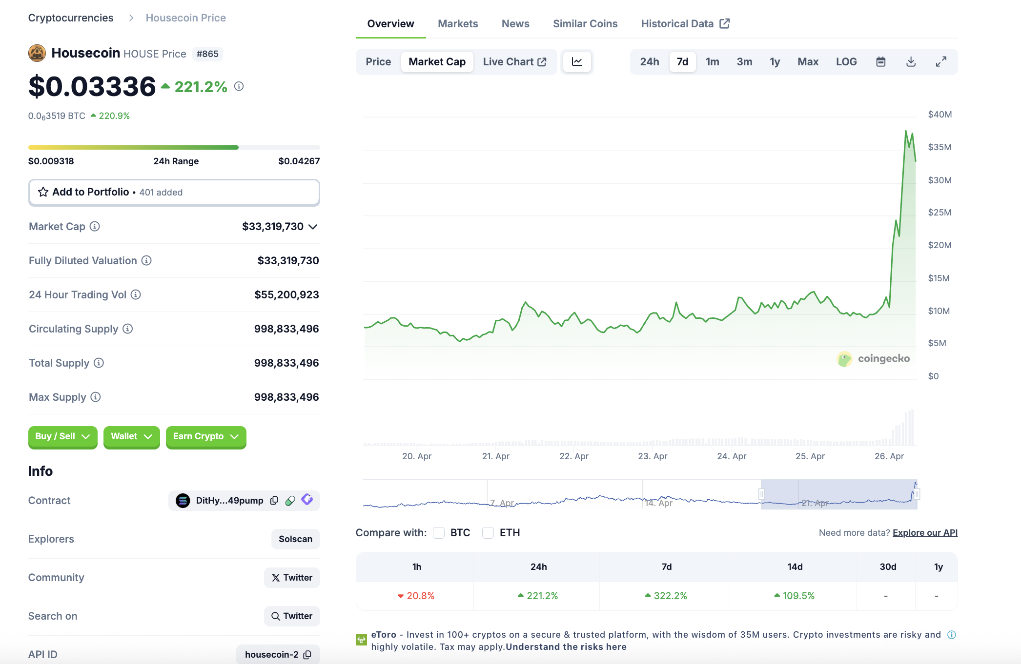 SponsoredHousecoin (HOUSE) weist derzeit eine Marktkapitalisierung von rund 33 Millionen USD auf