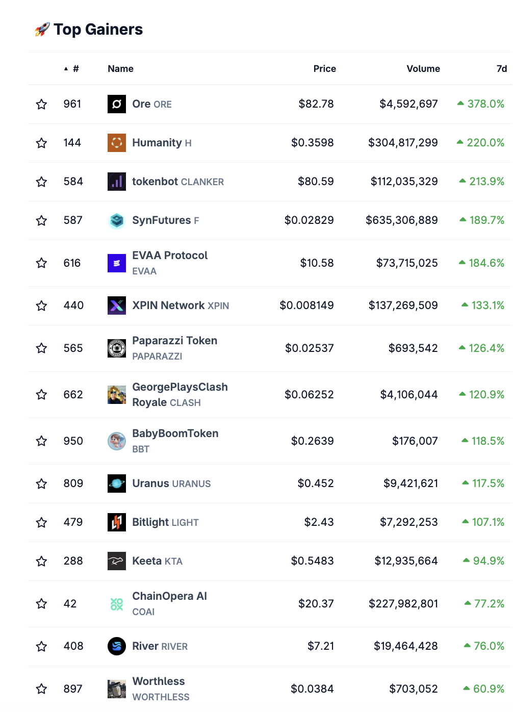 Der Coin Humanity (H) belegt in dieser Woche den zweiten Platz der Top-Gewinner auf dem Krypto-Markt. Laut Coingecko ist er innerhalb der letzten sieben Tage rund 220 % im Kurs gestiegen.