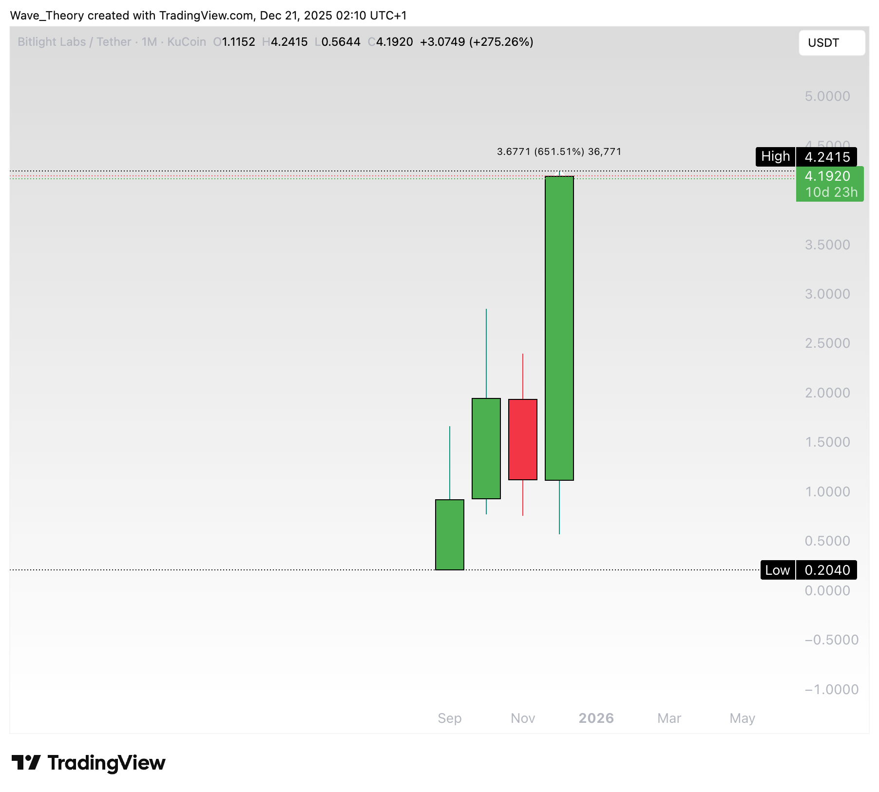 Der Coin Bitlight (LIGHT) ist in diesem Monat rund 651,5 % im Kurs gestiegen