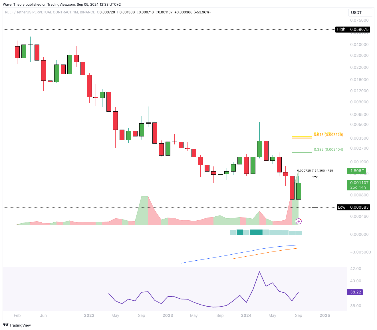 Reef stößt jetzt auf signifikante Fibonacci Unterstützung