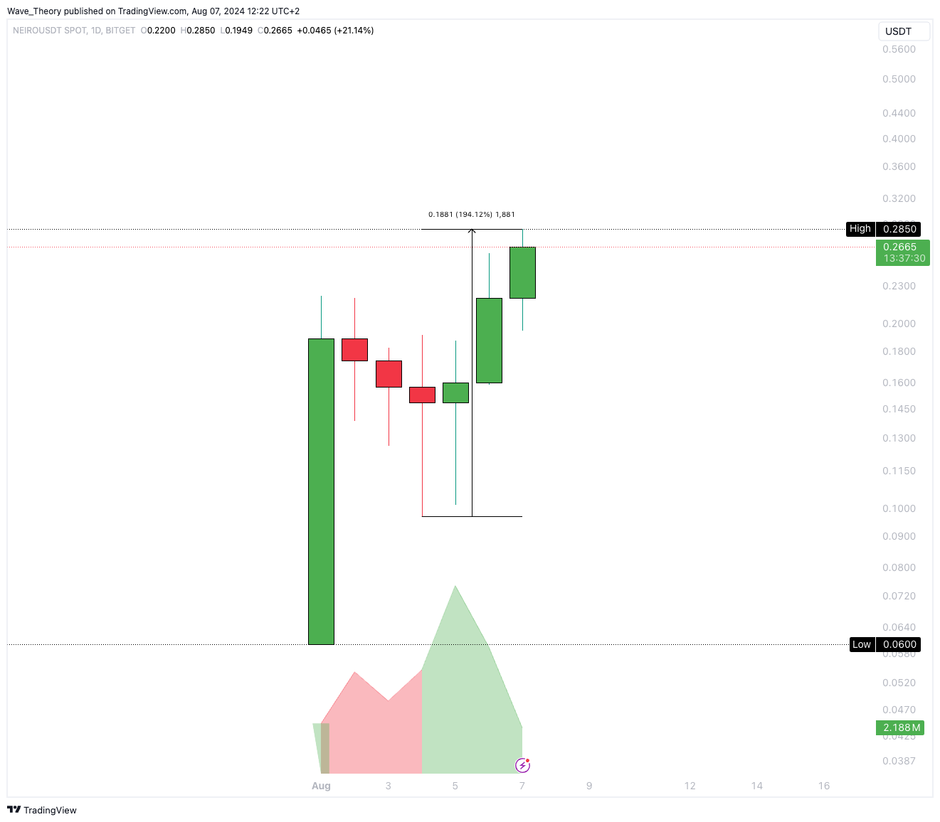 Der Coin Neiro (NEIRO) entwickelt sich derzeit sehr bullisch im Kurs. Wird es weiter bergauf gehen?