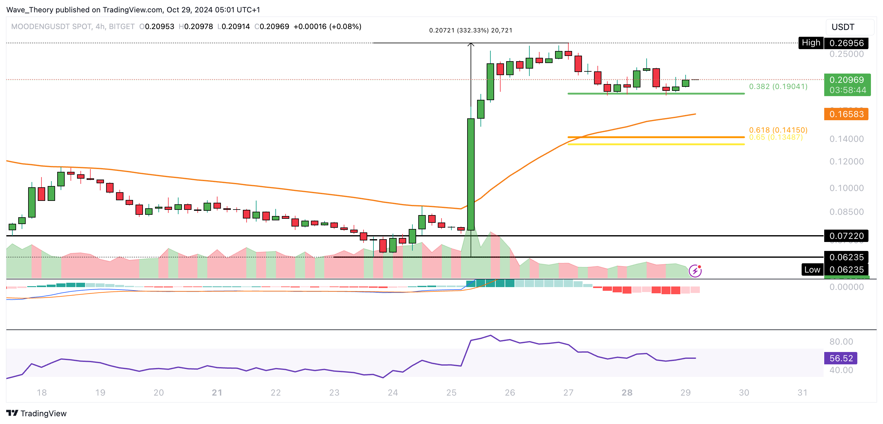 Sponsored SponsoredDabei hat MOODENG signifikante Fib Unterstützung bei rund 0,19 USD gefunden, woran der Kurs bisher bullisch abprallen konnte. Sollte diese Unterstützung halten, könnte MOODENG die Aufwärtsbewegung fortzusetzen und womöglich den letzten Hochpunkt von rund 0,27 USD übersteigen.