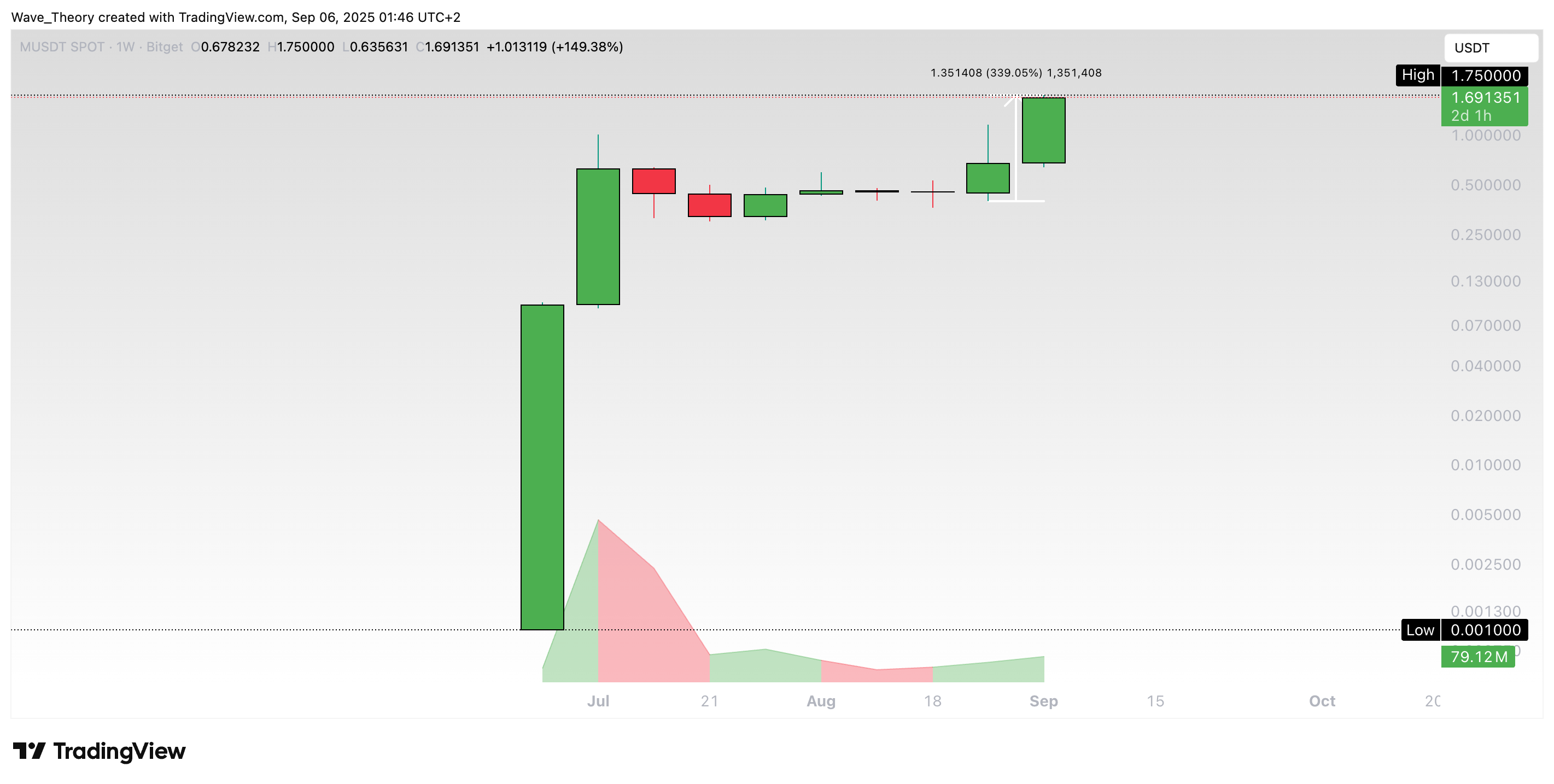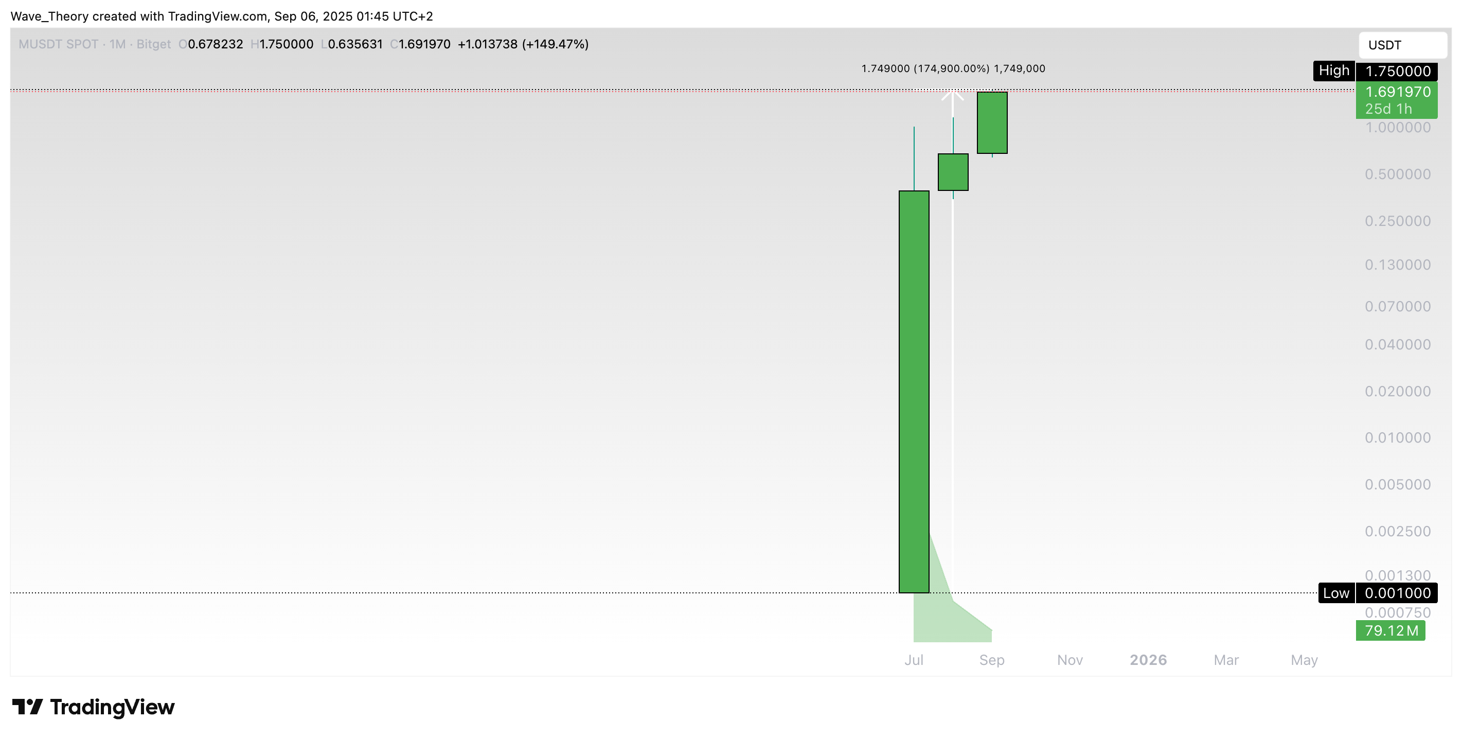 Der Coin MemeCore (M) ist seit Juli 174.900 % im Kurs gestiegen