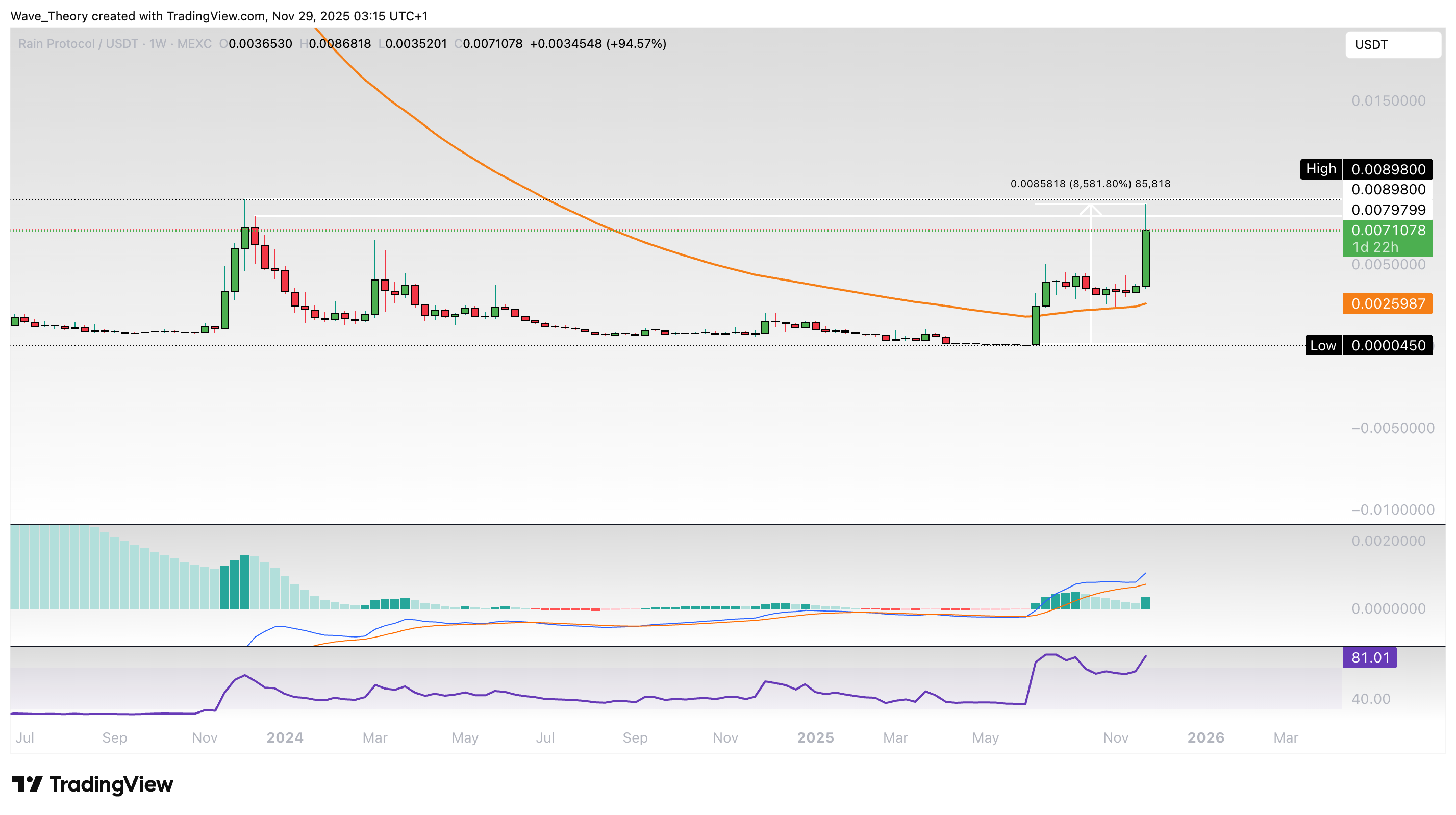 Rain (RAIN) weist derzeit eine Marktkapitalisierung von rund 1,7 Milliarden USD auf