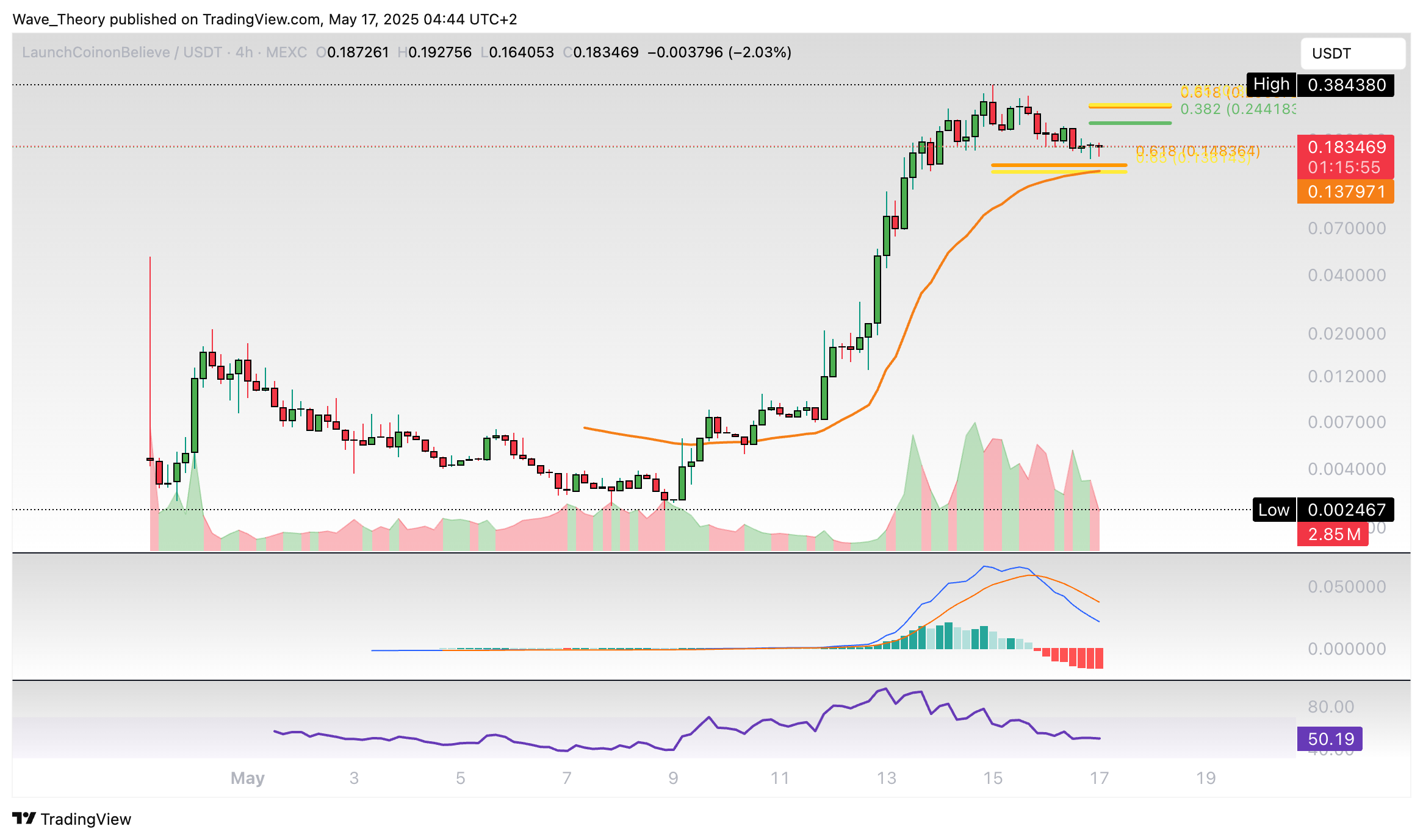 Innerhalb nur einer Woche ist der LAUNCHCOIN um über 15.480 % gestiegen. Damit hat der Kurs bei rund 0,384 USD einen Höhepunkt erreicht.