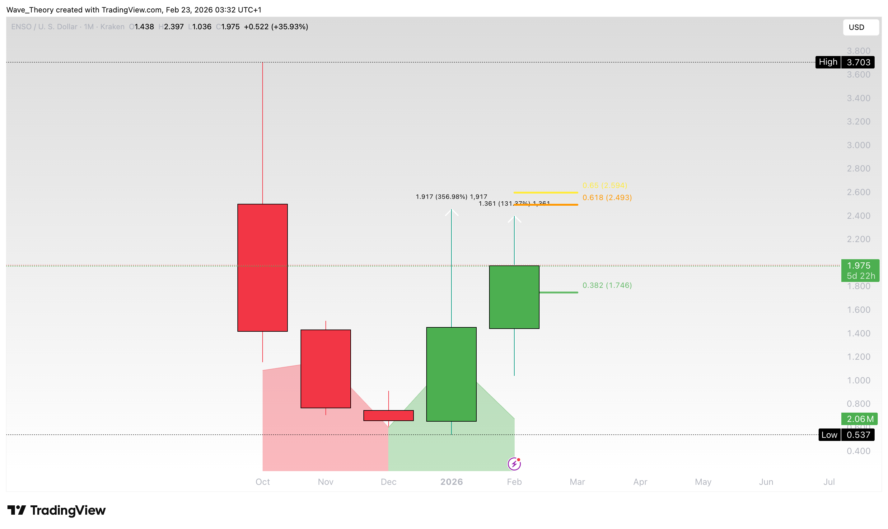 Der Coin Enso (ENSO) ist letzten Monat rund 357 % im Kurs gestiegen