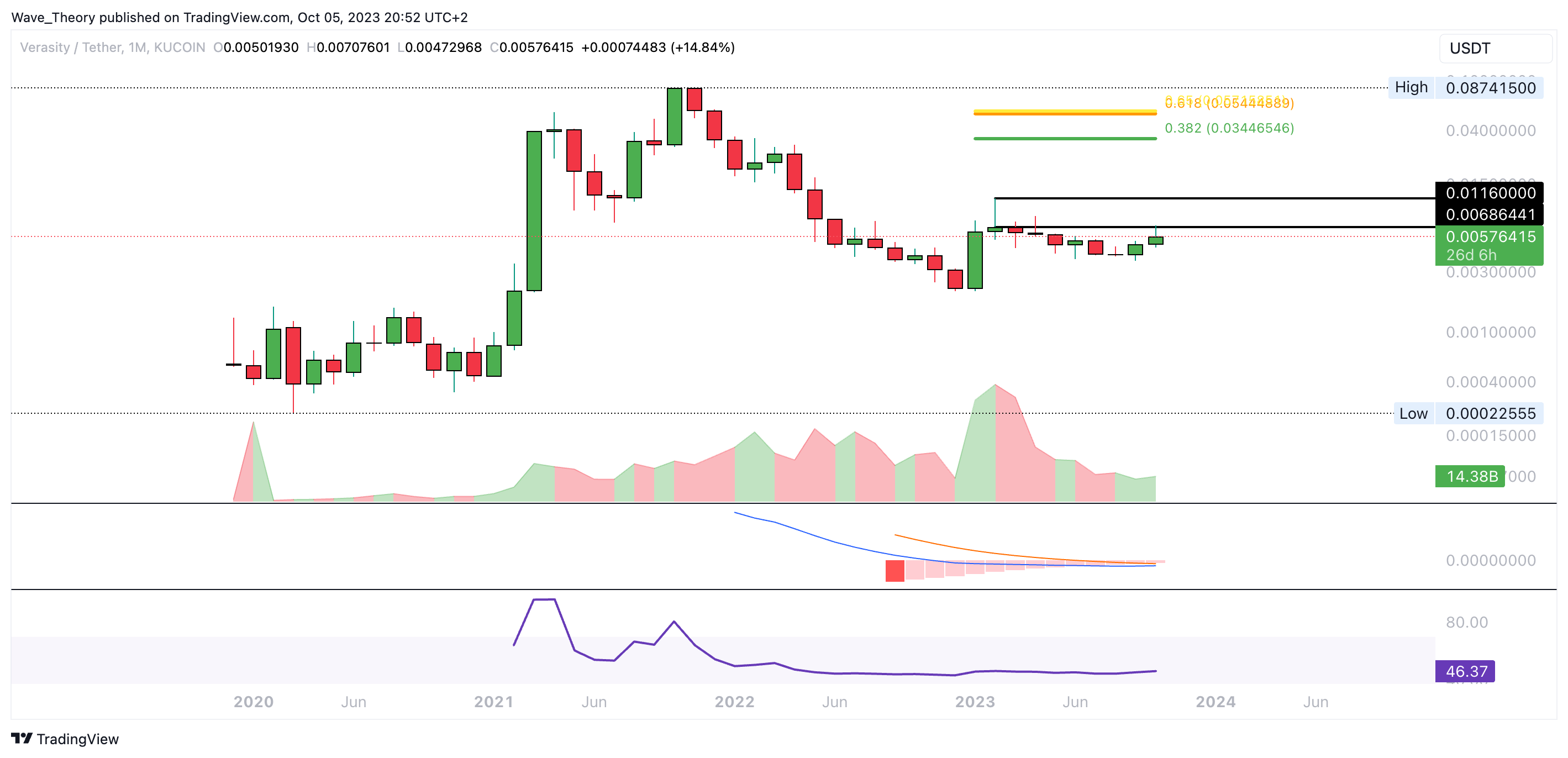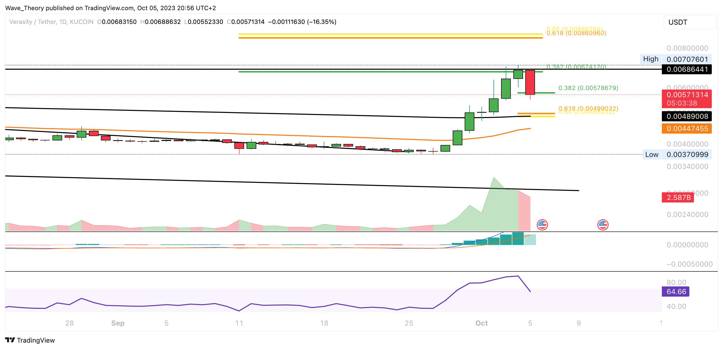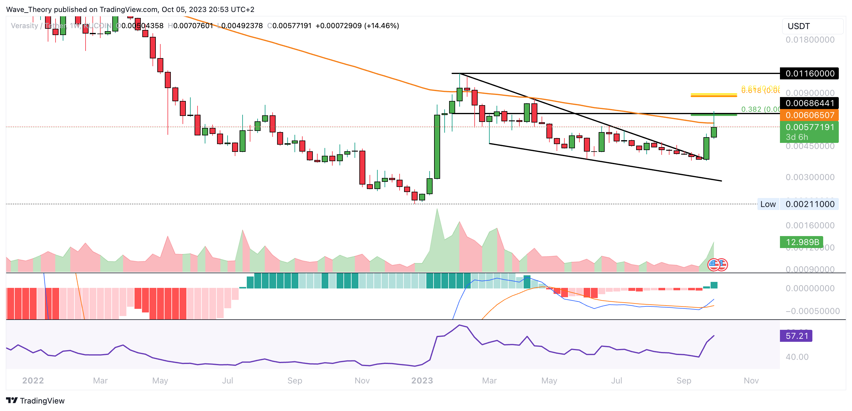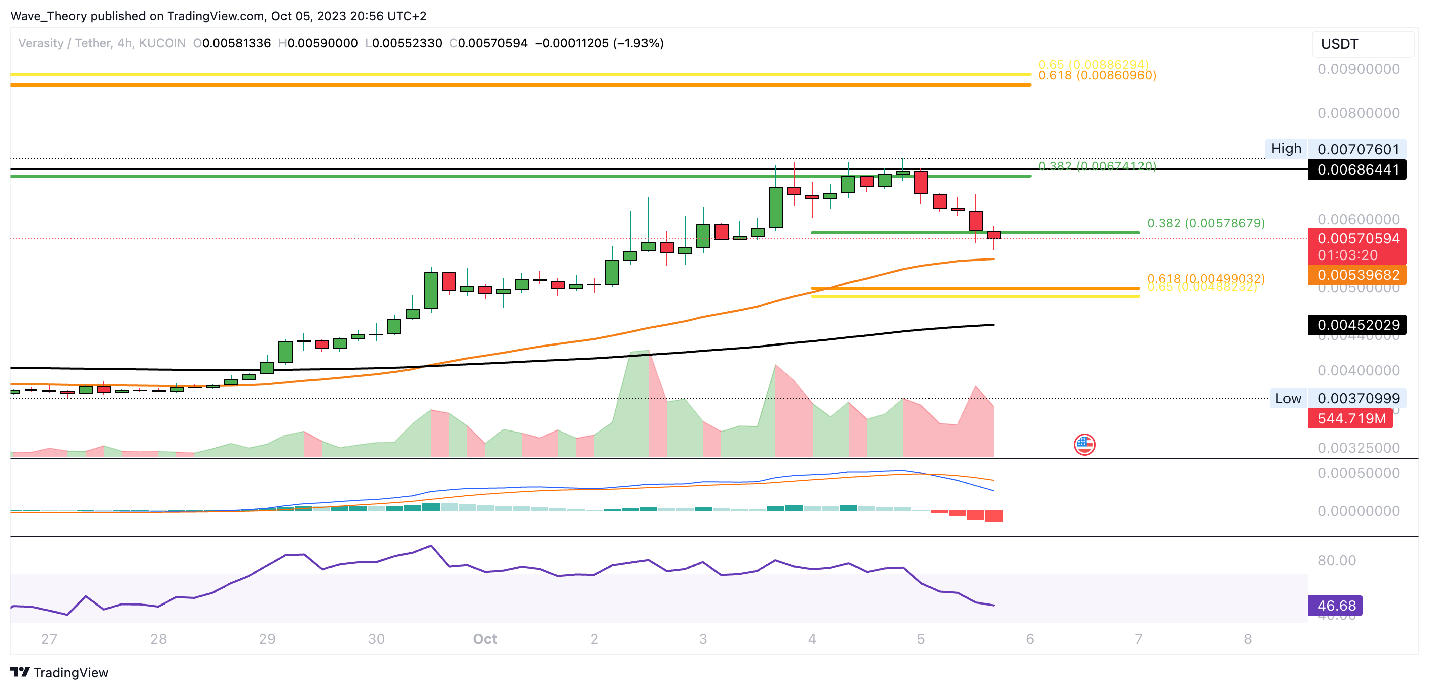 Der Verasity Kurs stößt jetzt am 0,382 Fib Niveau bei rund 0,00579 USD auf signifikante Unterstützung. Dort könnte der Kurs bullisch abprallen.