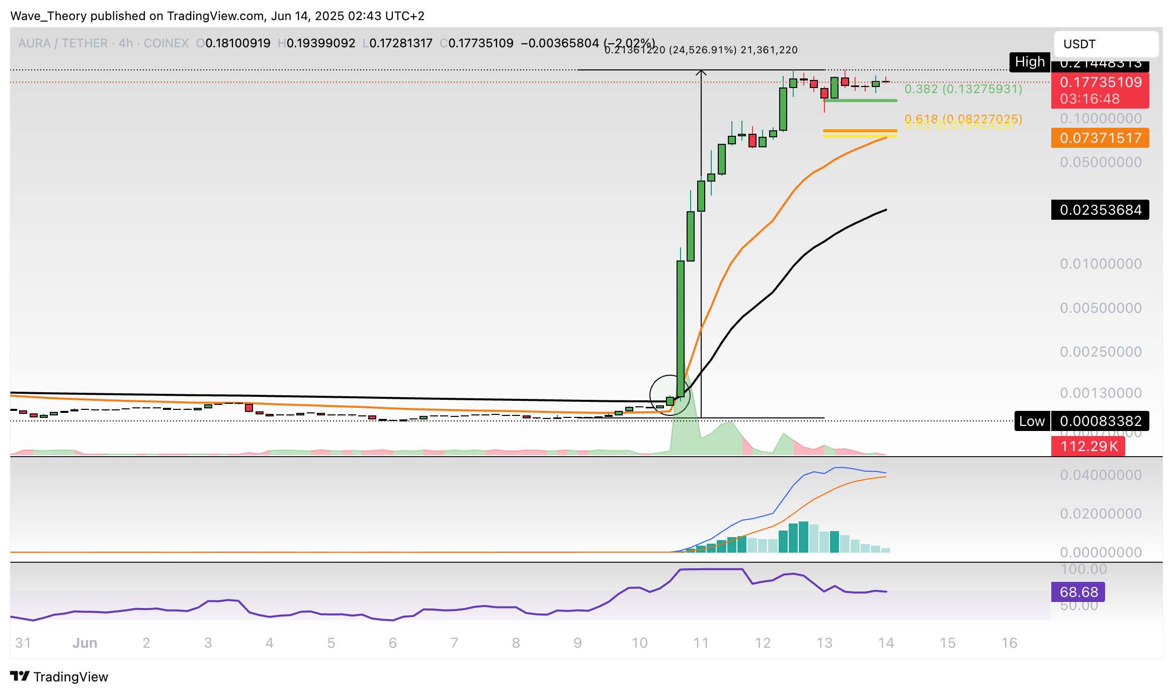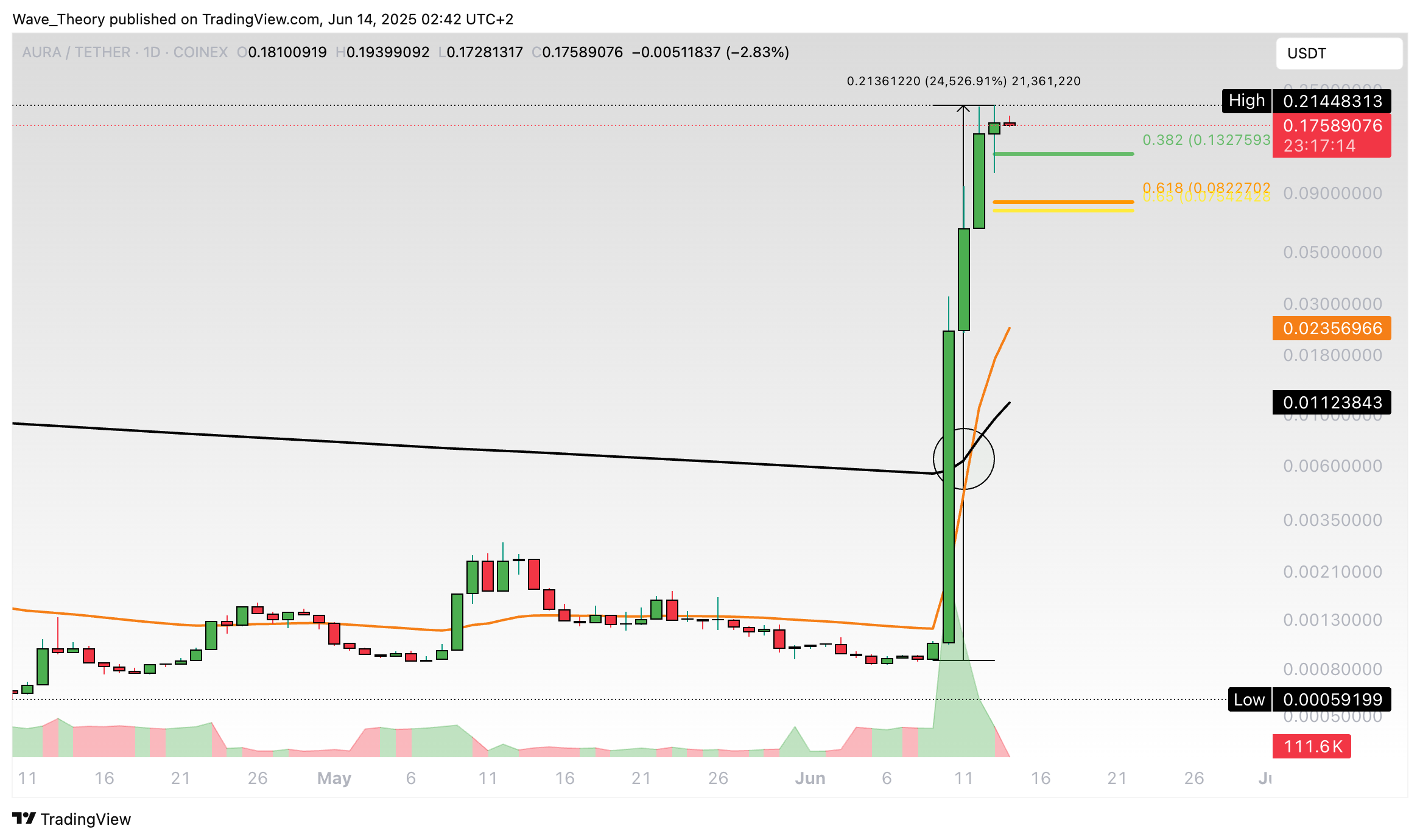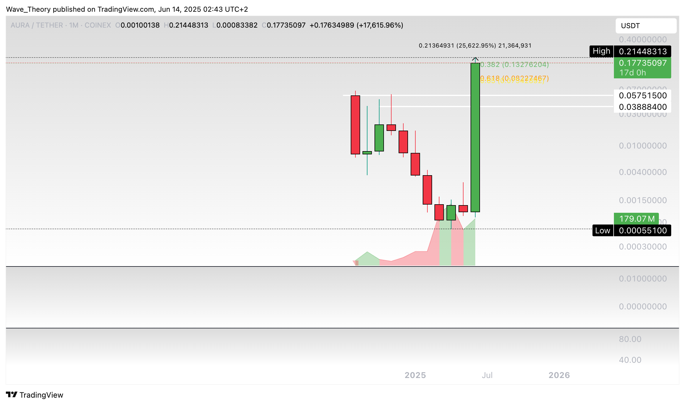 aura (AURA) konnte seit Montag rund 24.527 % im Kurs steigen