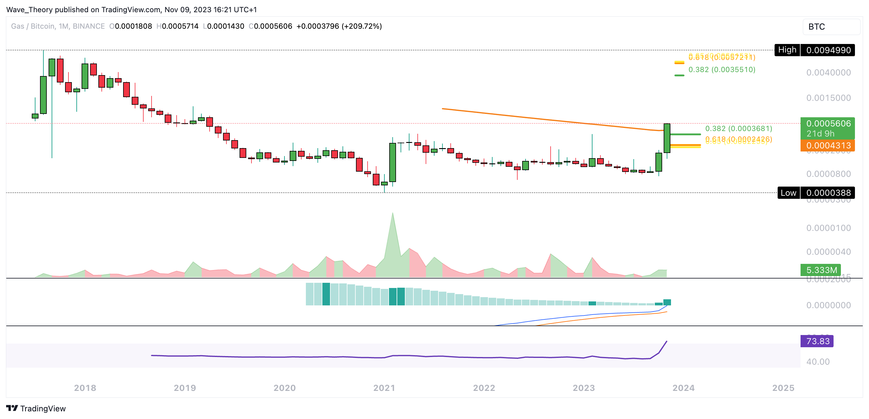 Ansonsten warten bei rund 0,00335 BTC und 0,00575 BTC signifikante Fib Widerstände. Auf Unterstützung stößt der GAS Kurs dabei bereits bei rund 0,000368 BTC und bei rund 0,00024 BTC.