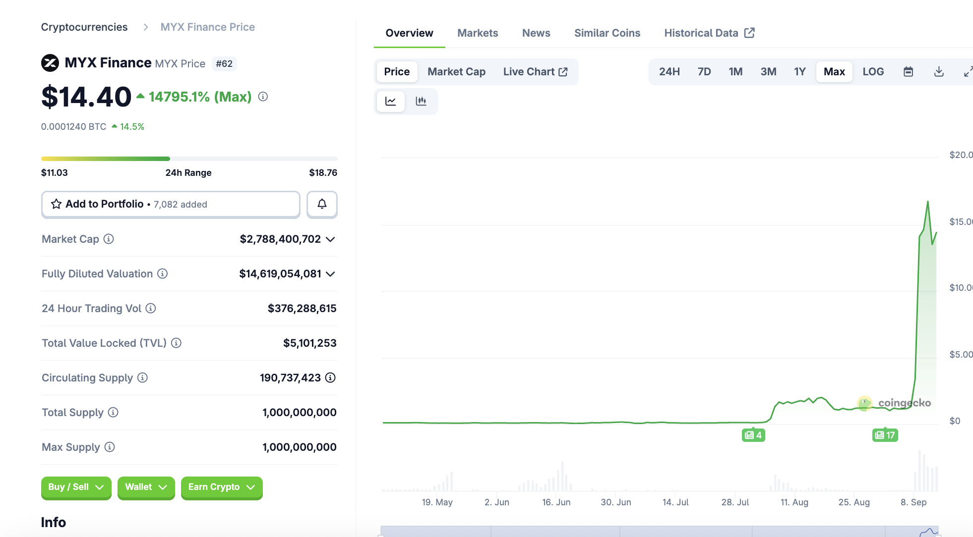 Mit einer Marktkapitalisierung von rund 2,79 Milliarden USD befindet sich MYX Finance (MYX) auf Platz 62 im Coingecko Ranking. Damit ist der Coin bereits sehr groß.