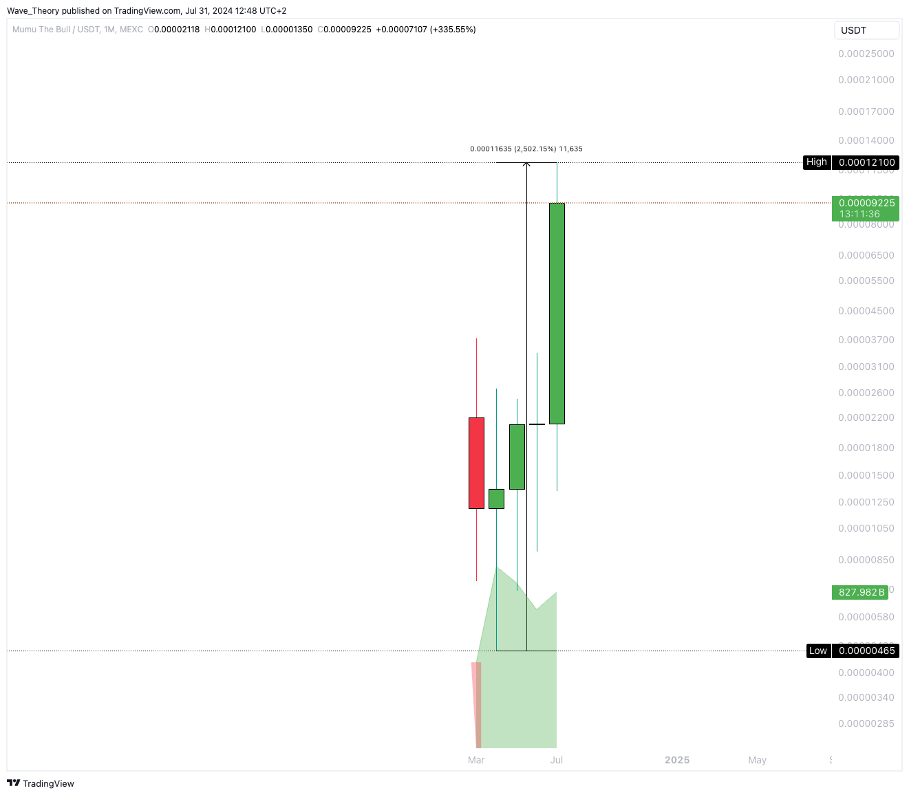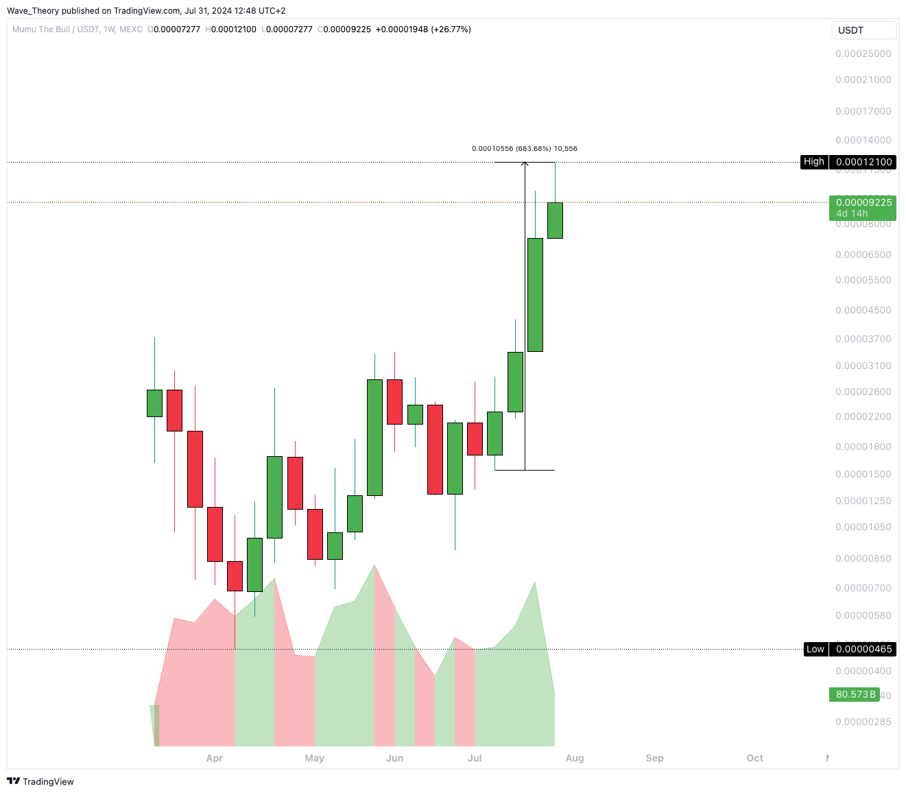 Die letzten dreieinhalb Wochen verliefen extrem bullisch für den MUMU Kurs. Denn dieser Coin konnte seither rund 684 % im Kurs steigen.