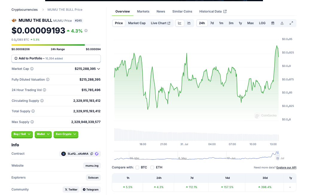 MUMU THE BULL (MUMU) ist ein weiterer Memecoin massive Kursgewinne aufweist