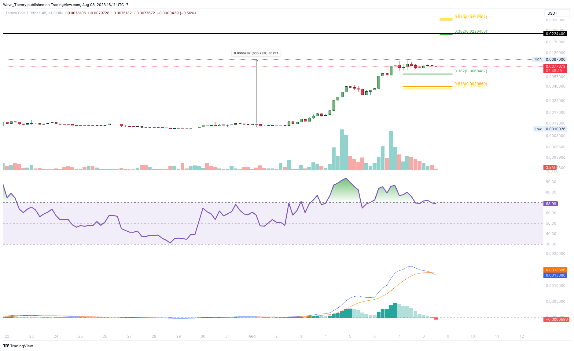 Nichtsdestoweniger könnte der TARA Kurs an einer der beiden Fib Unterstützungen bei rund 0,00605 USD respektive 0,0039 USD bullisch abprallen, um die Aufwärtsbewegung fortzusetzen. Dann könnte der Kurs den nächsten Fib Widerstand bei rund 0,022 USD anvisieren.