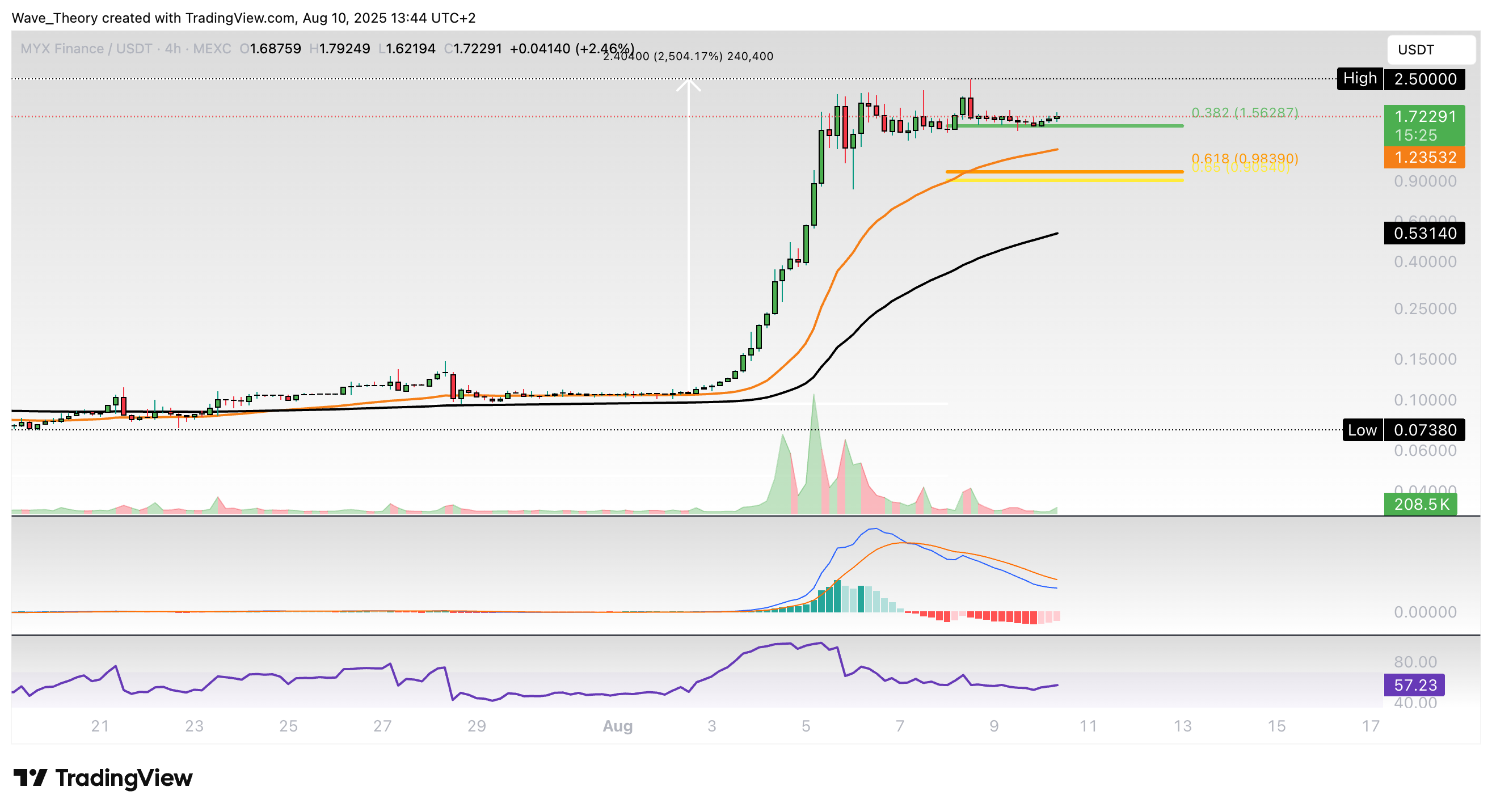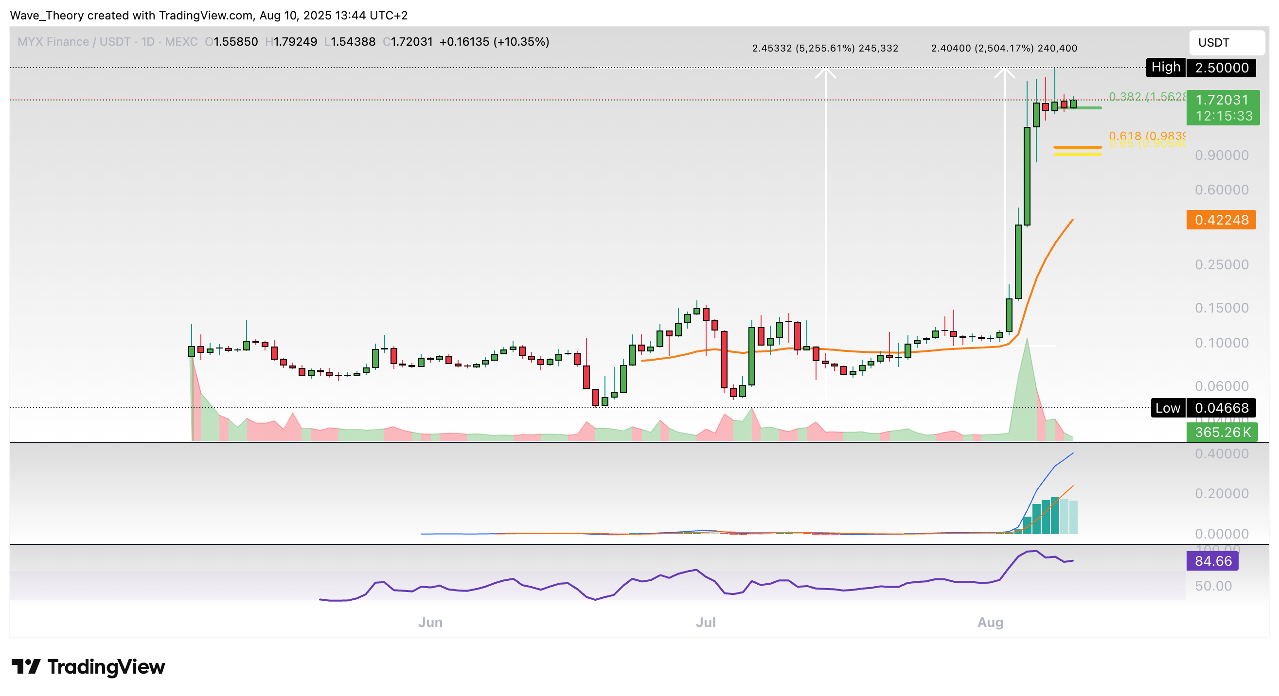 Sponsored SponsoredDer Coin MYX Finance (MYX) ist seit Montag letzte Woche über 2.504 % im Kurs gestiegen