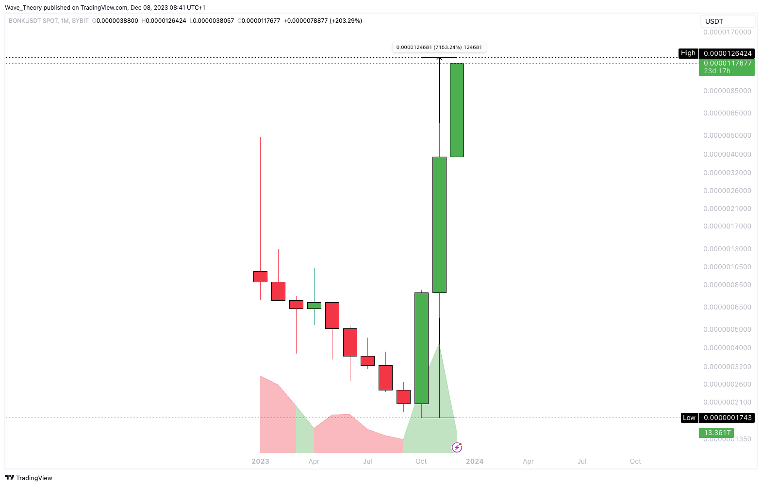 Wer also am tiefsten Punkt im Oktober rund 1.000 USD in Bonk investiert hat, hatte zeitweise im Dezember ein Kapital von mehr als 70.000 USD. Dabei wird der Token Bonk noch nicht lange auf den Börsen gehandelt.