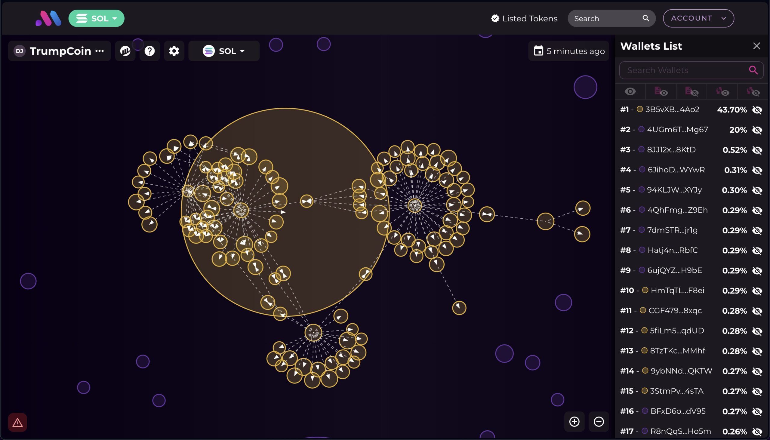 Der Blockchain Datenanbieter Bubblemaps teilte seine On-Chain-Analyse mit. Seine Forschung zeigt, dass 67 Prozent des DJT-Angebots in einem Cluster liegen.