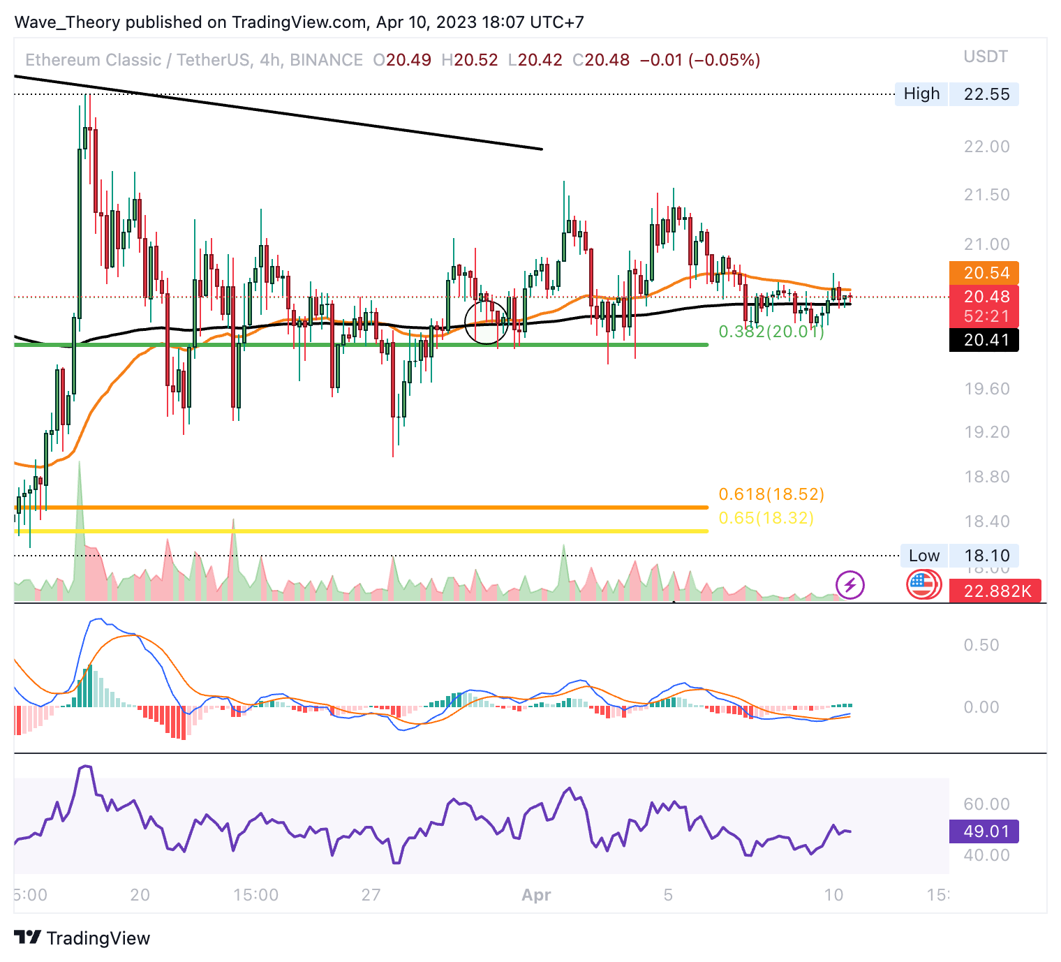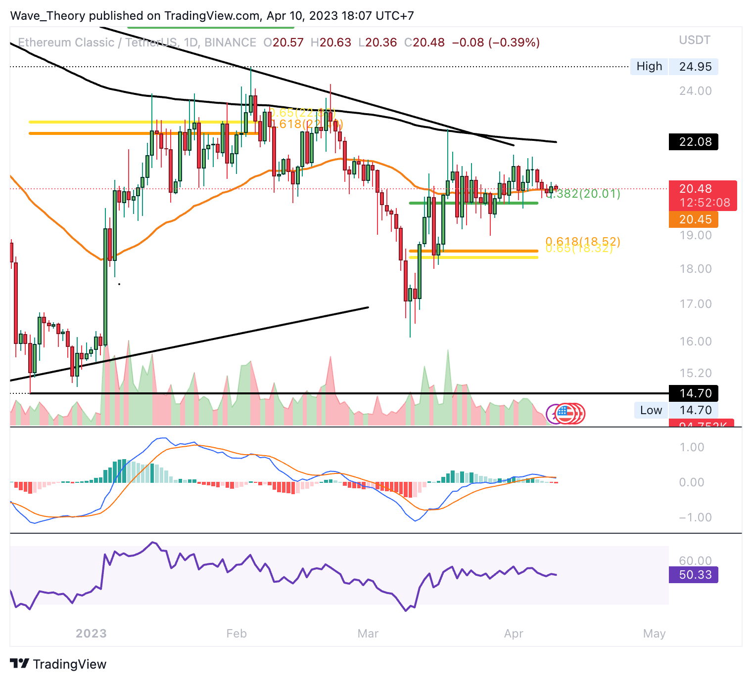 - ETC wurde zunächst am Golden Ratio Widerstand bei rund 22,5 USD bärisch abgewiesen.