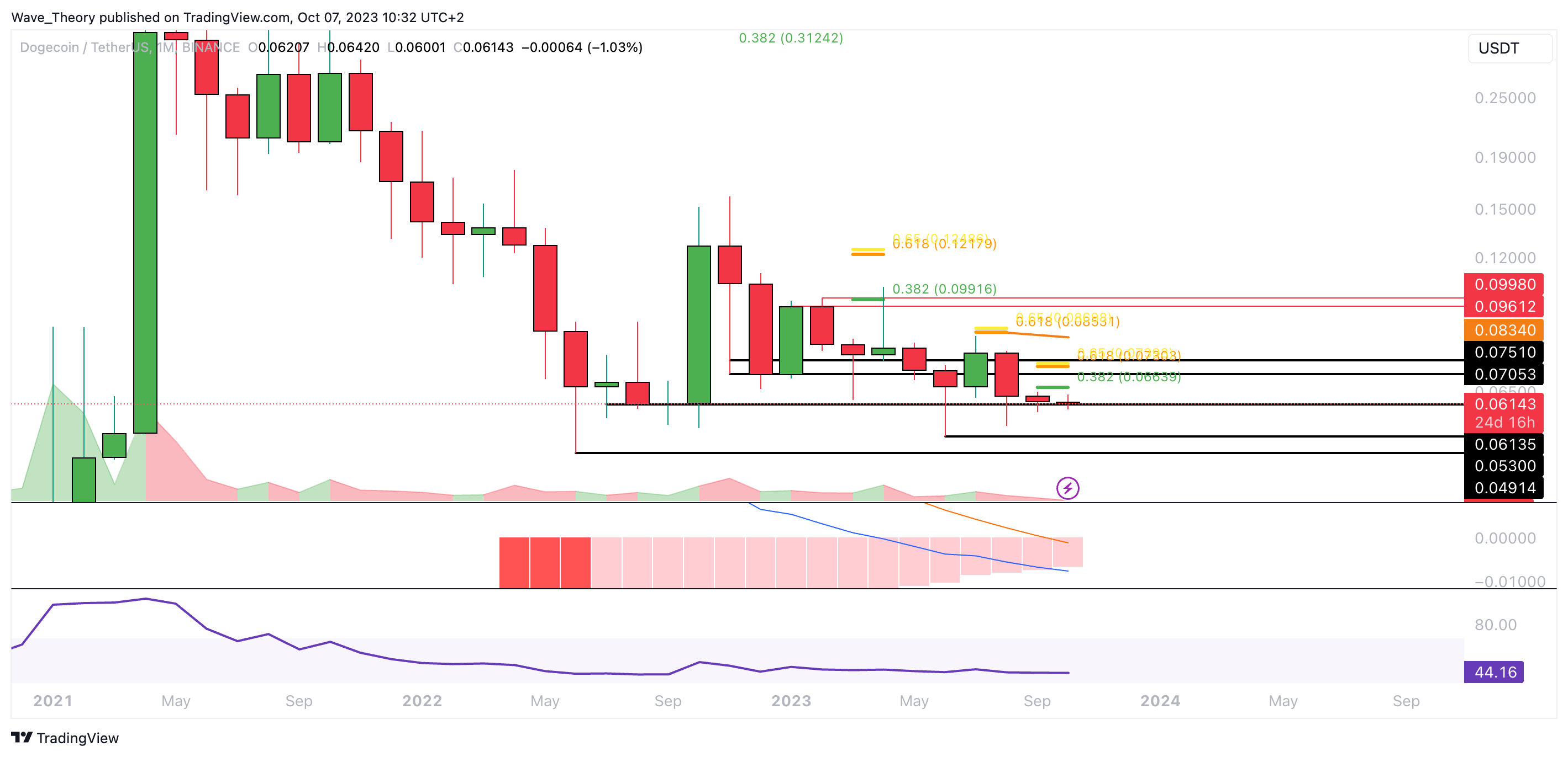 Wenn der Dogecoin die aktuelle Unterstützung bei rund 0,06135 USD bärisch bricht, könnte der Kurs zur Unterstützung zwischen rund 0,049 USD und 0,053 USD zurückkehren.