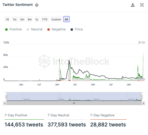 Auf Twitter ist die Stimmung hingegen extrem positiv gegenüber Dogecoin