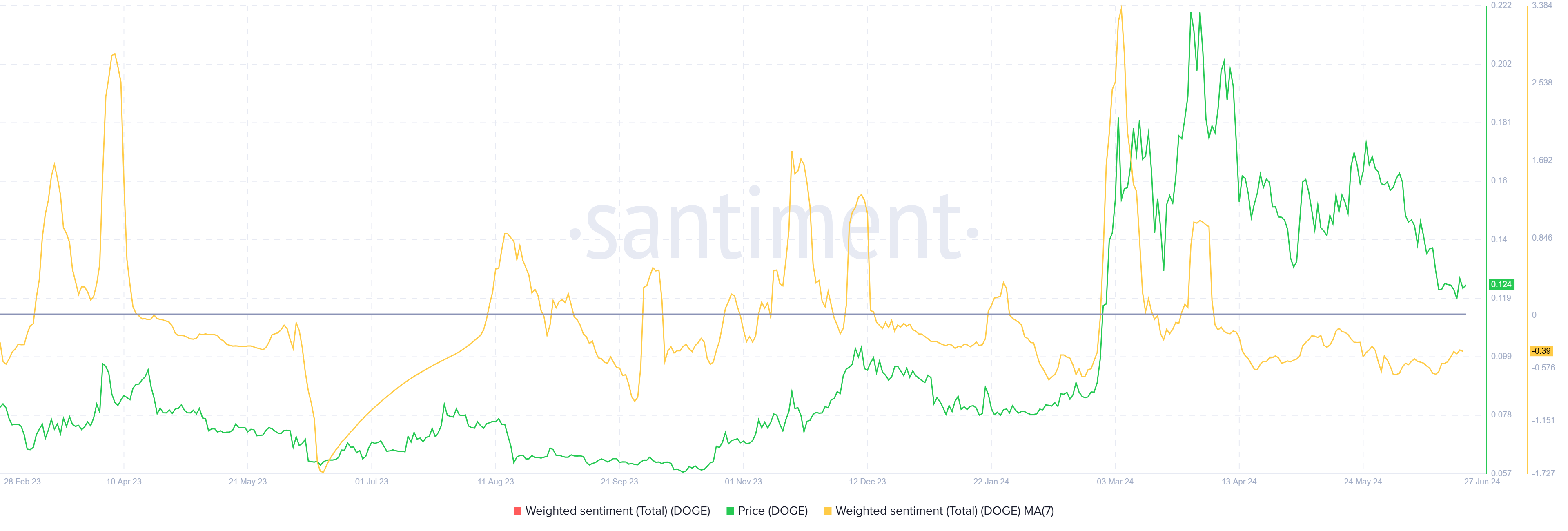 Zudem waren Dogecoin Investoren nicht besonders optimistisch. Das gewichtete Sentiment blieb fast drei Monate lang negativ, was eine anhaltende Vorsicht und Pessimismus unter den Marktteilnehmern widerspiegelt.