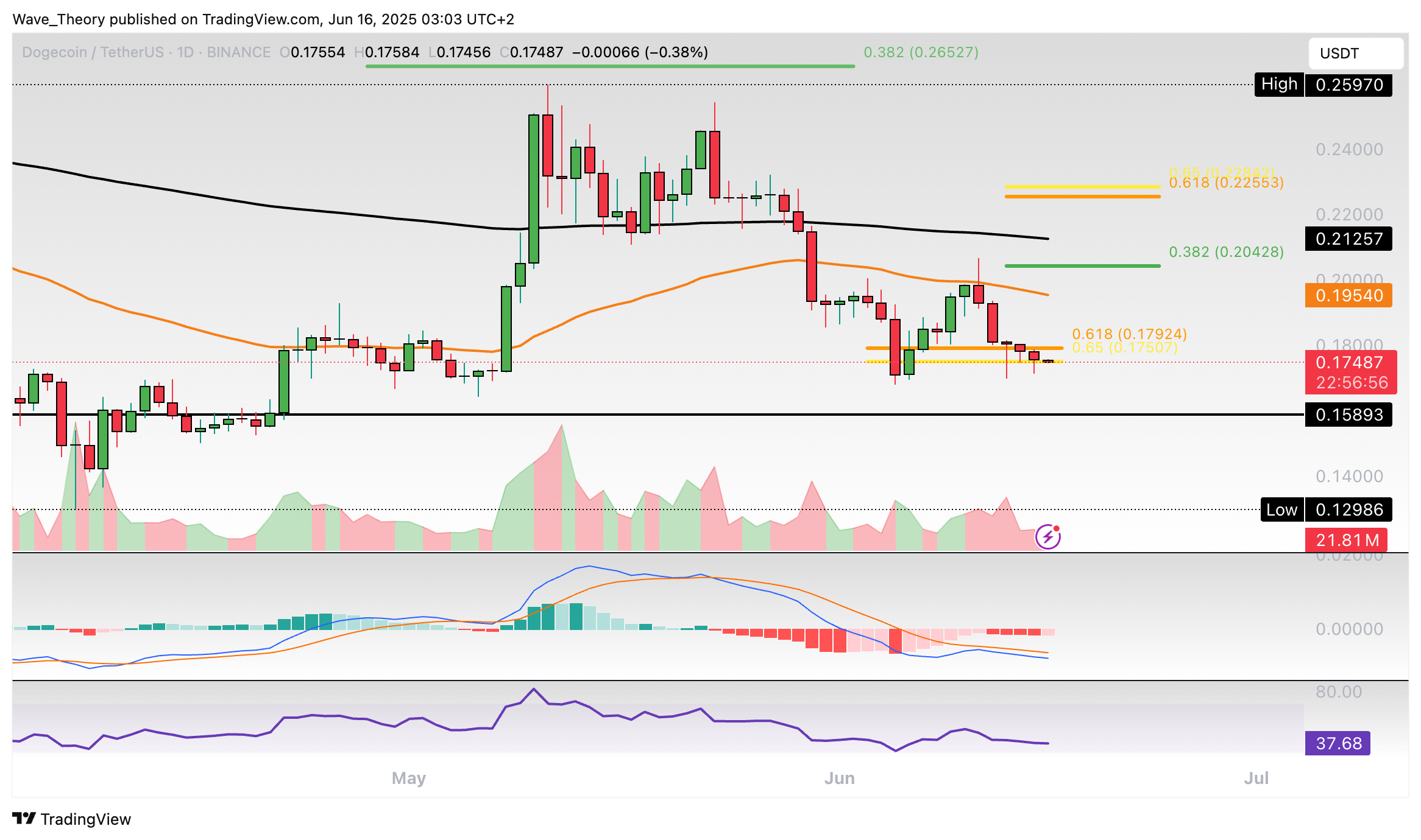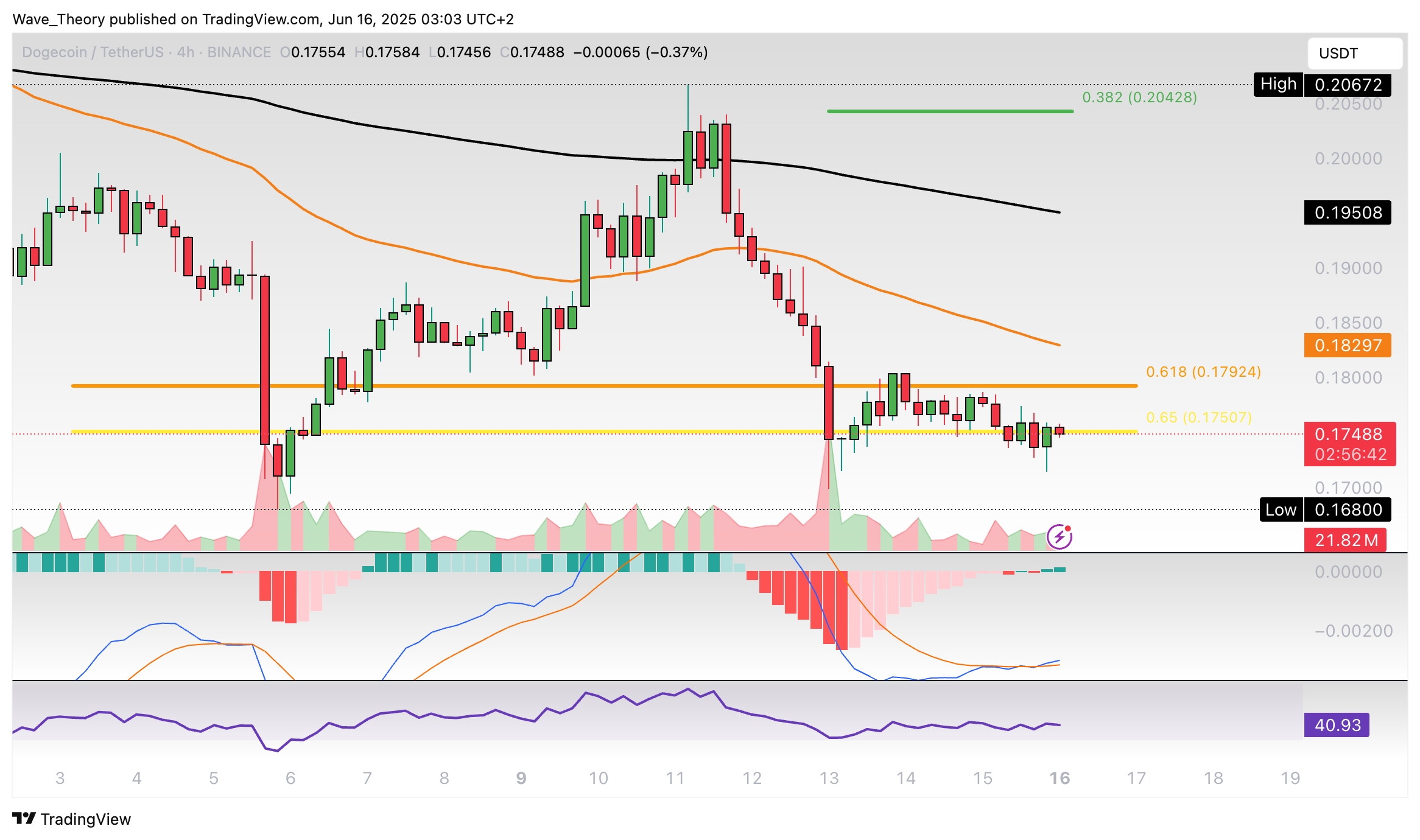 Dogecoin-Prognose für Montag, 16. Juni 2025: Der Dogecoin Kurs entwickelt sich bärisch und könnte jetzt eine Etage tiefer fallen.