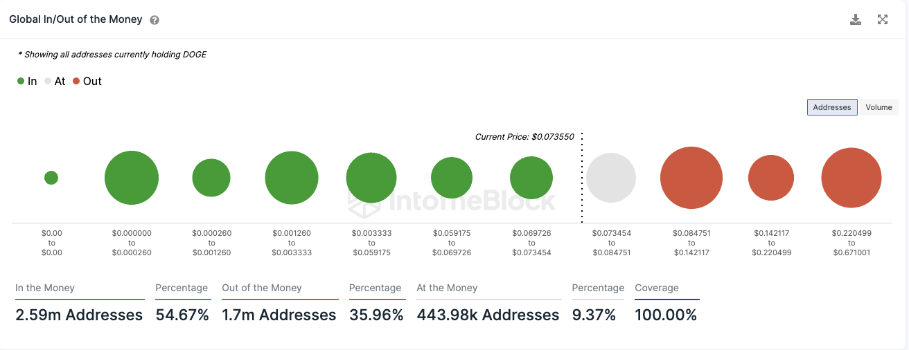 Derzeit befindet sich etwas mehr als die Hälfte der Dogecoin Adressen im Plus