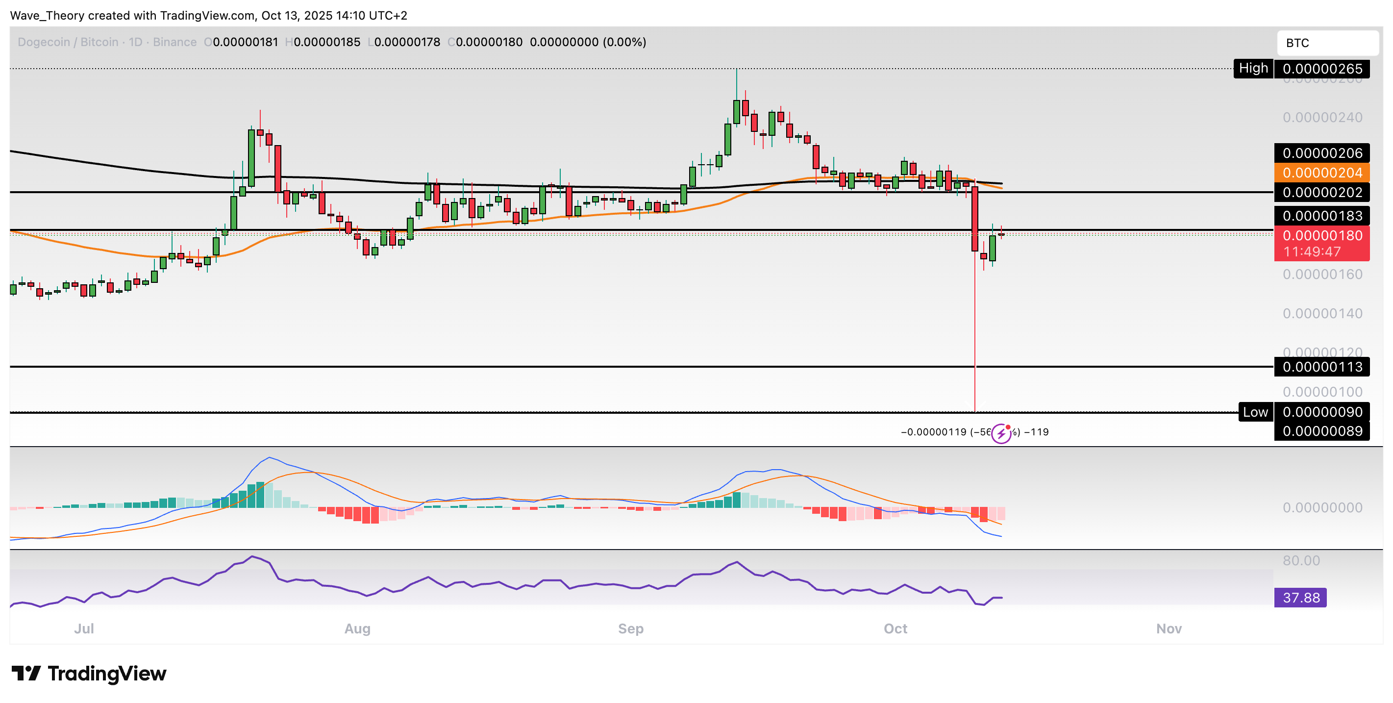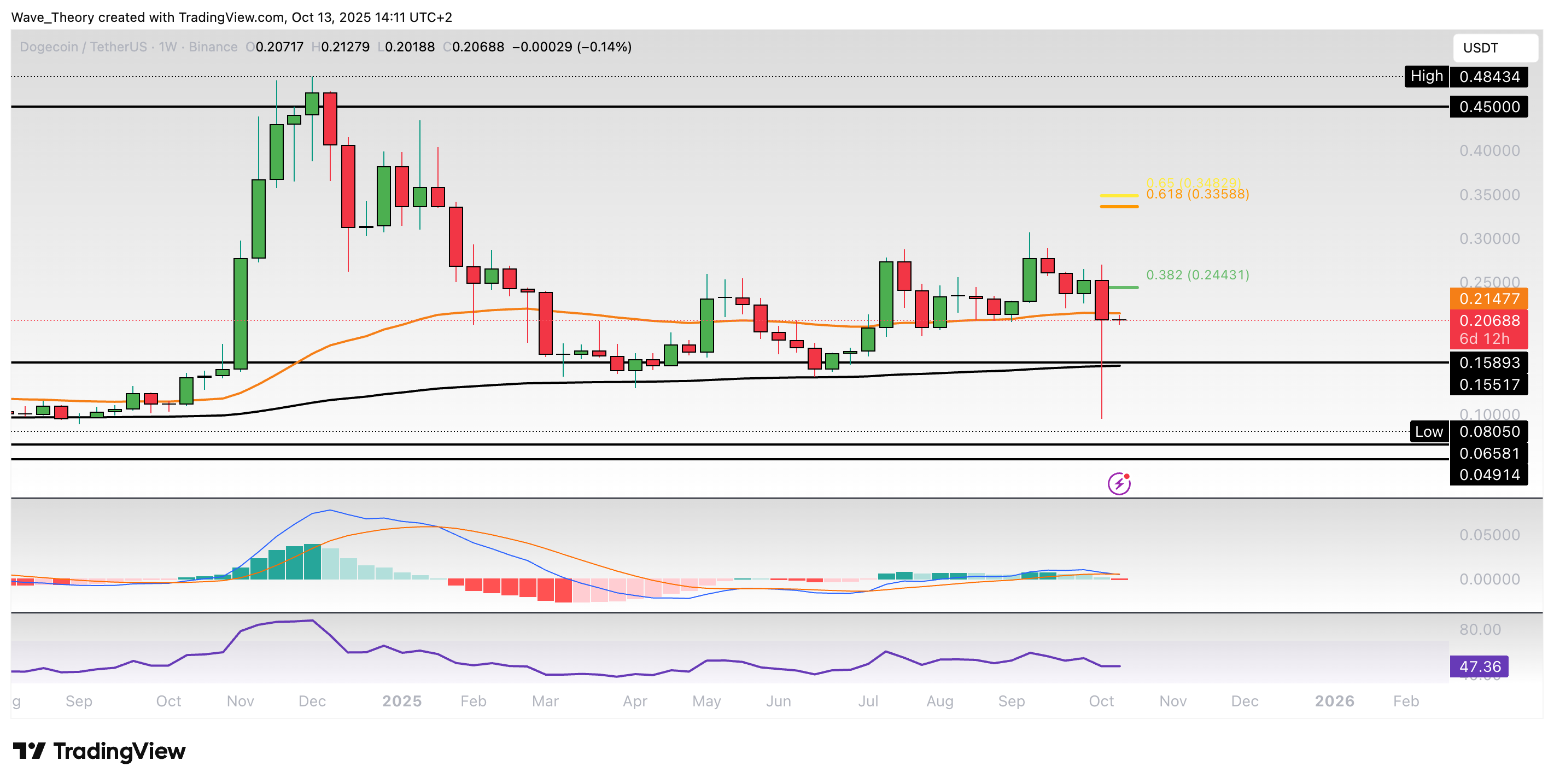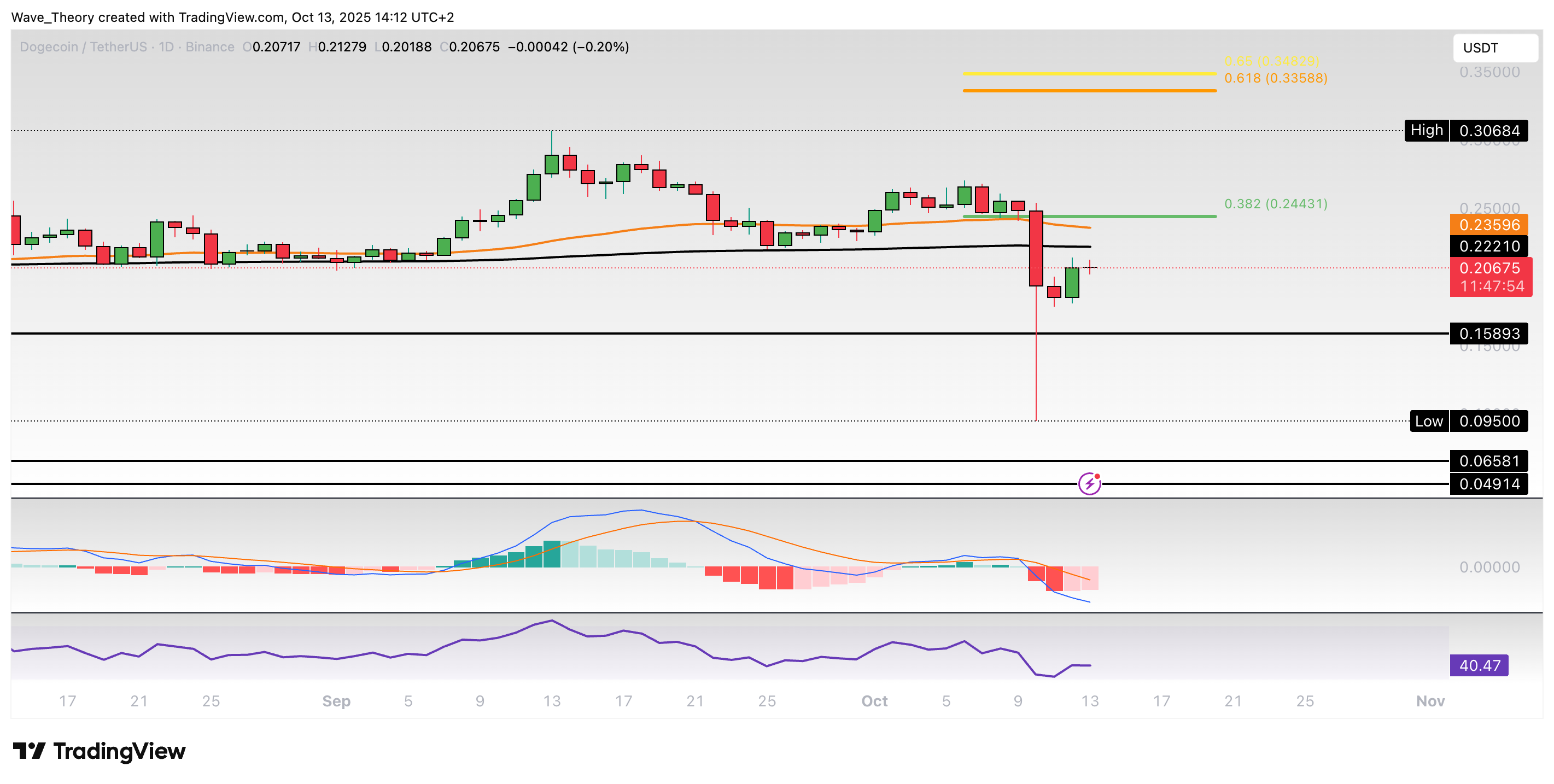 Dogecoin-Prognose für Montag, 13. Oktober 2025: Der Dogecoin Kurs ist in nur einem Tag rund 63 % gefallen. Kann sich der Kurs wieder erholen?