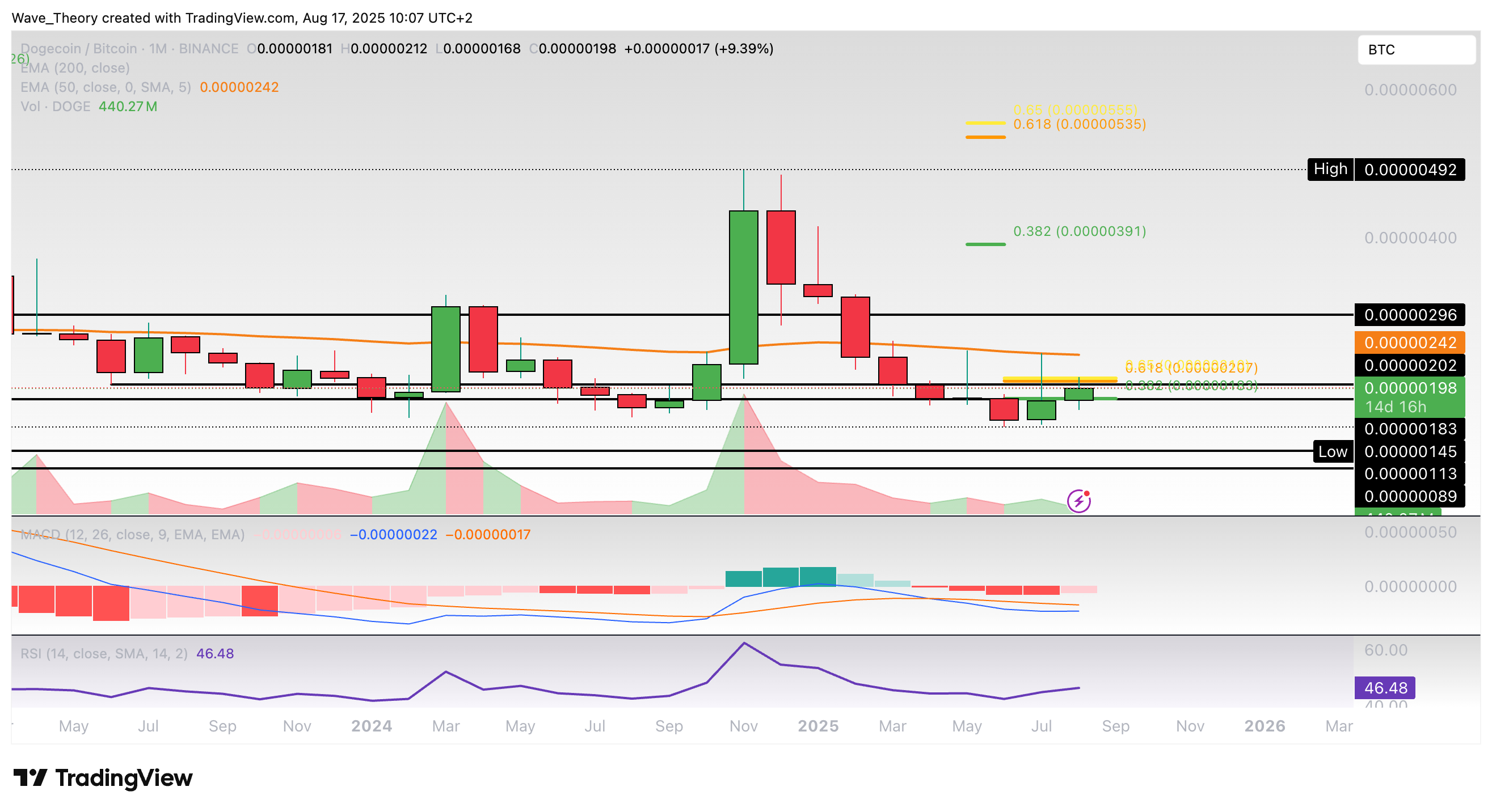 Gegen Bitcoin trifft der Dogecoin Kurs auf signifikanten Golden Ratio Widerstand