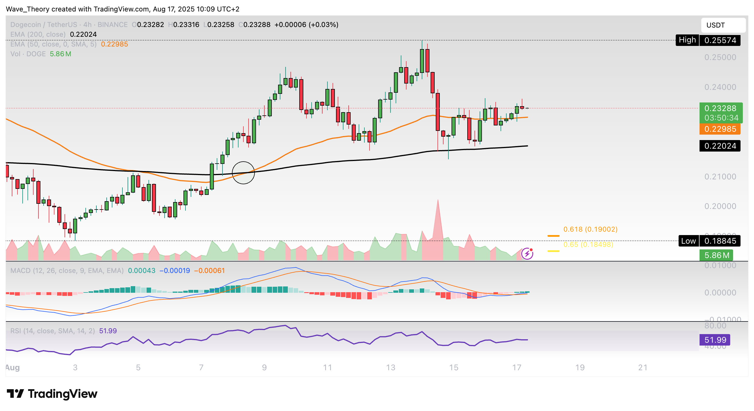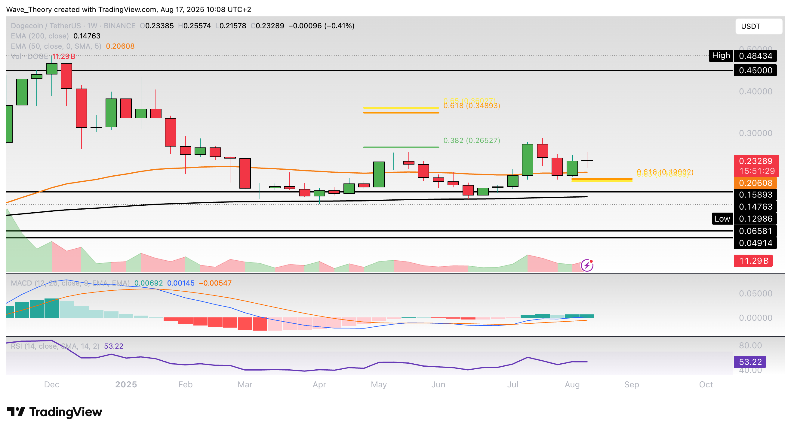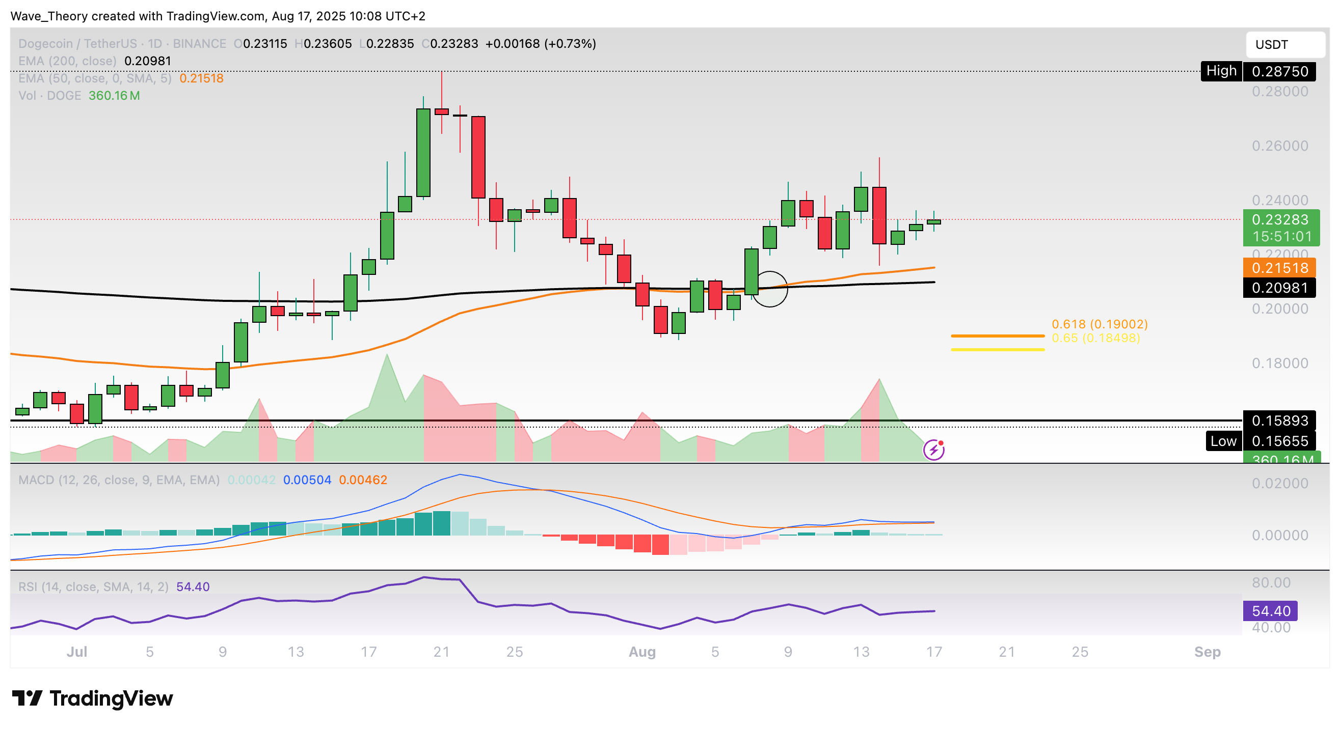 Dogecoin-Prognose für Sonntag, 17. August 2025: Der Dogecoin Kurs konnte letzte Woche an wichtiger Unterstützung abprallen. Geht es jetzt wieder bergauf?