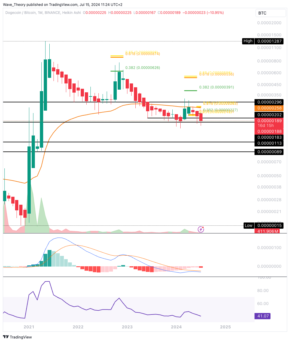 Gegen Bitcoin befindet sich Dogecoin in signifikanter Unterstützungszone