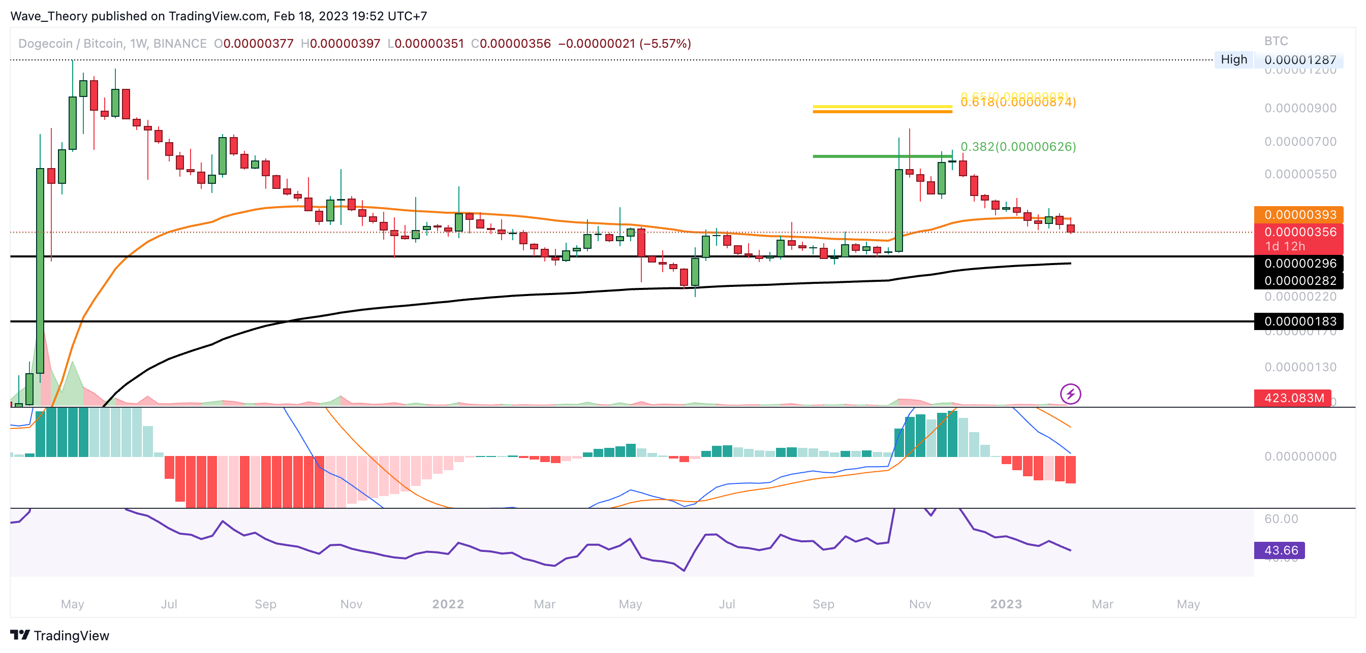 Gegen BTC erreicht Dogecoin bald signifikante Unterstützung