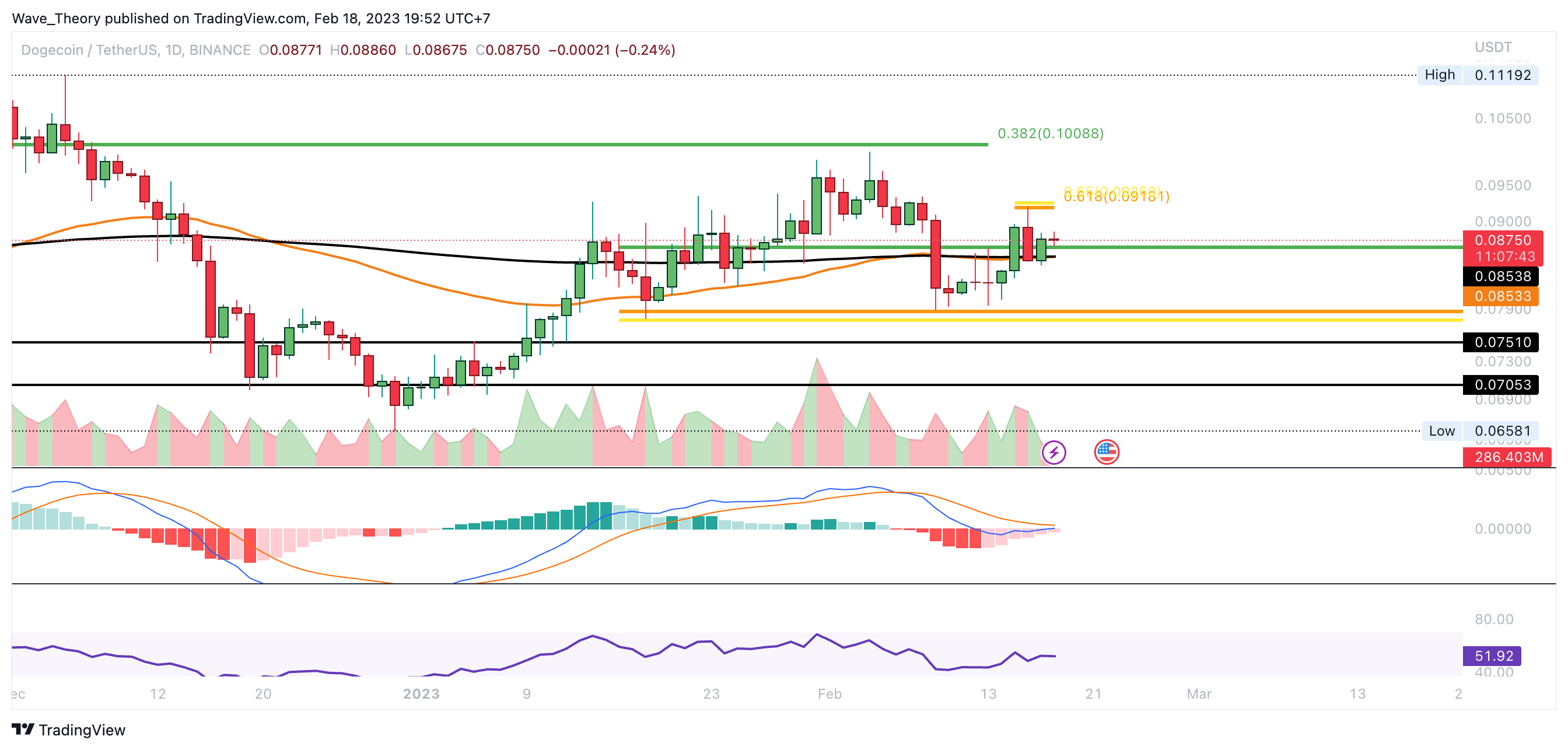 Dann könnte Dogecoin erneut zur Golden Ratio Unterstützung bei rund 0,078 zurückkehren.