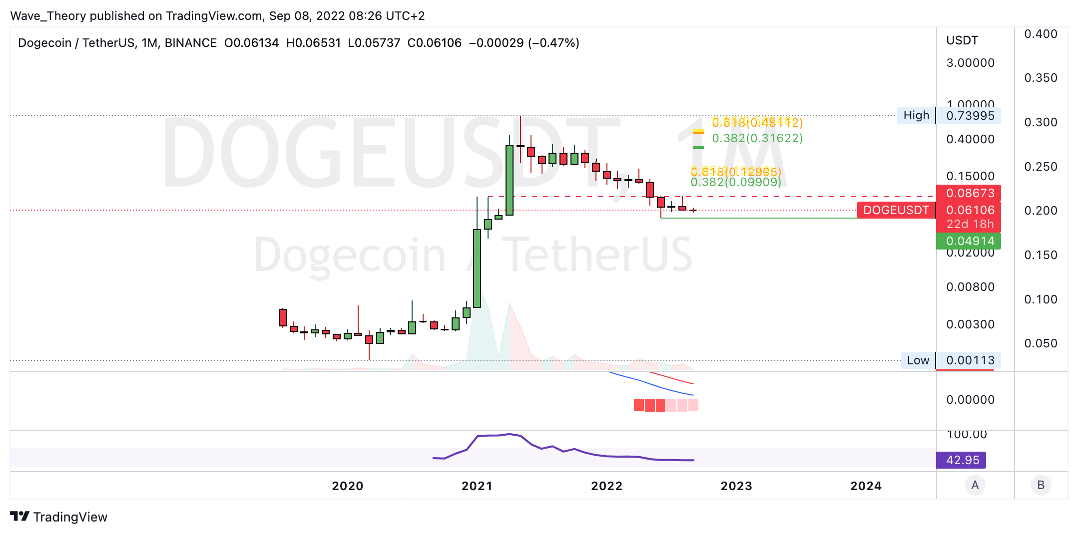 SponsoredOhne ein Bruch der Golden Ratio bei rund 0,48 USD bleibt der Dogecoin Kurs im Bärentrend. Zudem befindet sich Dogecoin aktuell an der letzten Unterstützung, bevor der DOGE Kurs auf rund 0,049 USD fallen könnte.
