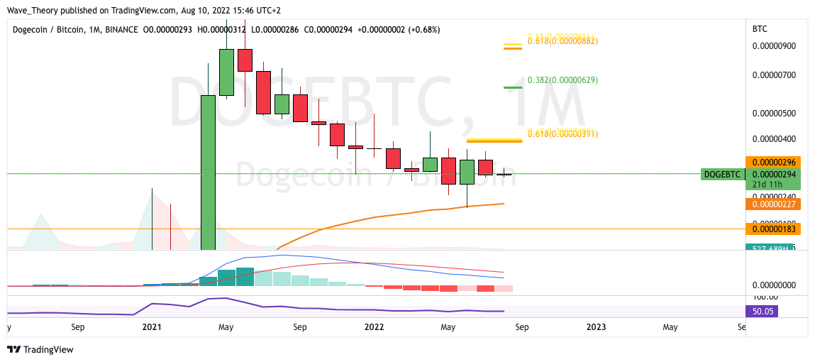 Gegen BTC prallte der DOGE Kurs am 50-Monate-EMA ab