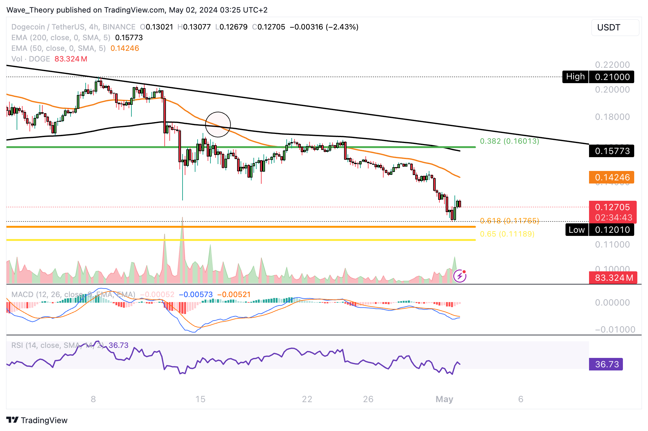 Im 4H-Chart von Dogecoin hat sich ein Death Cross geformt