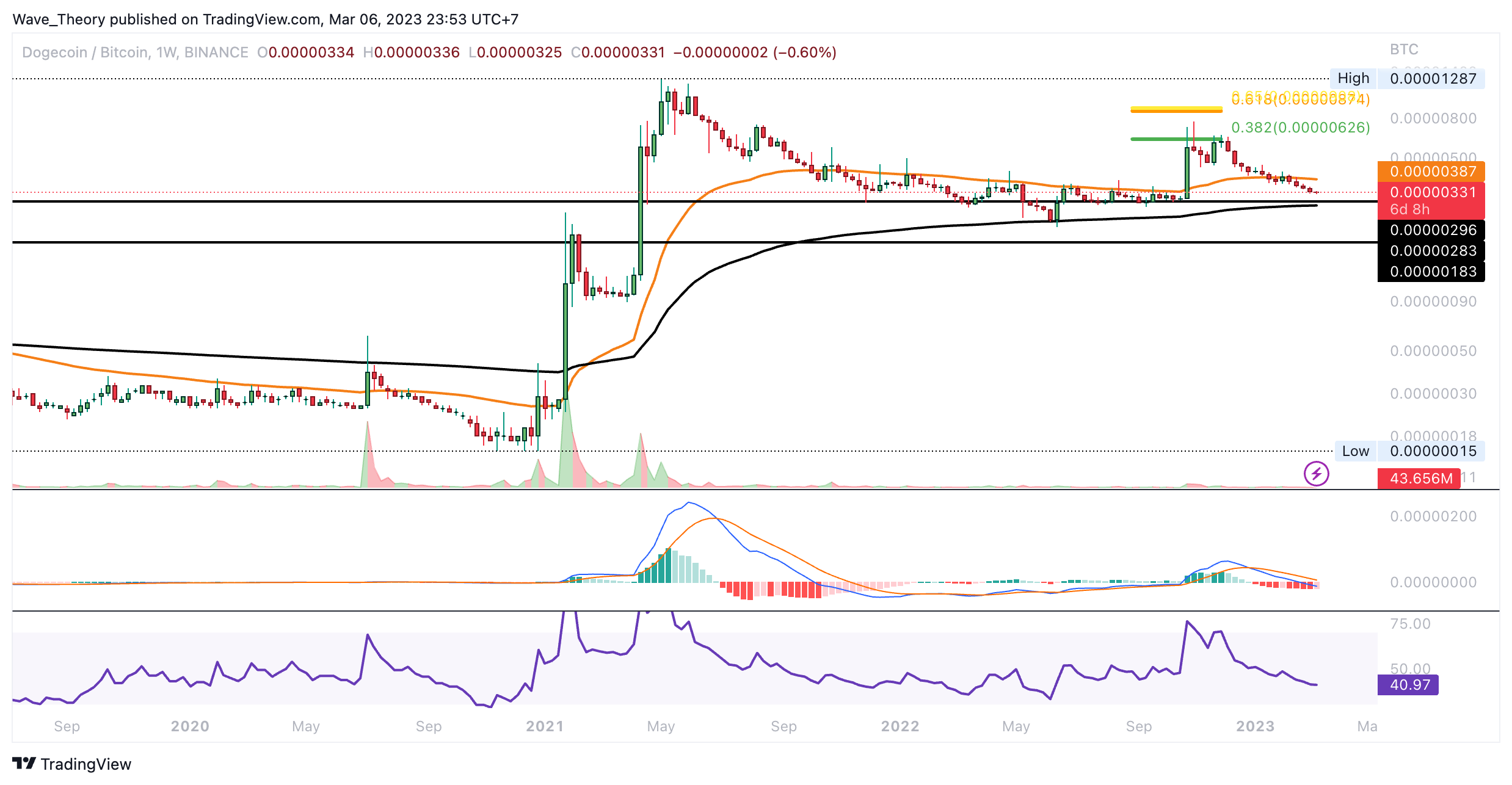 Gegen BTC erreicht Dogecoin bald den 200-Wochen-EMA