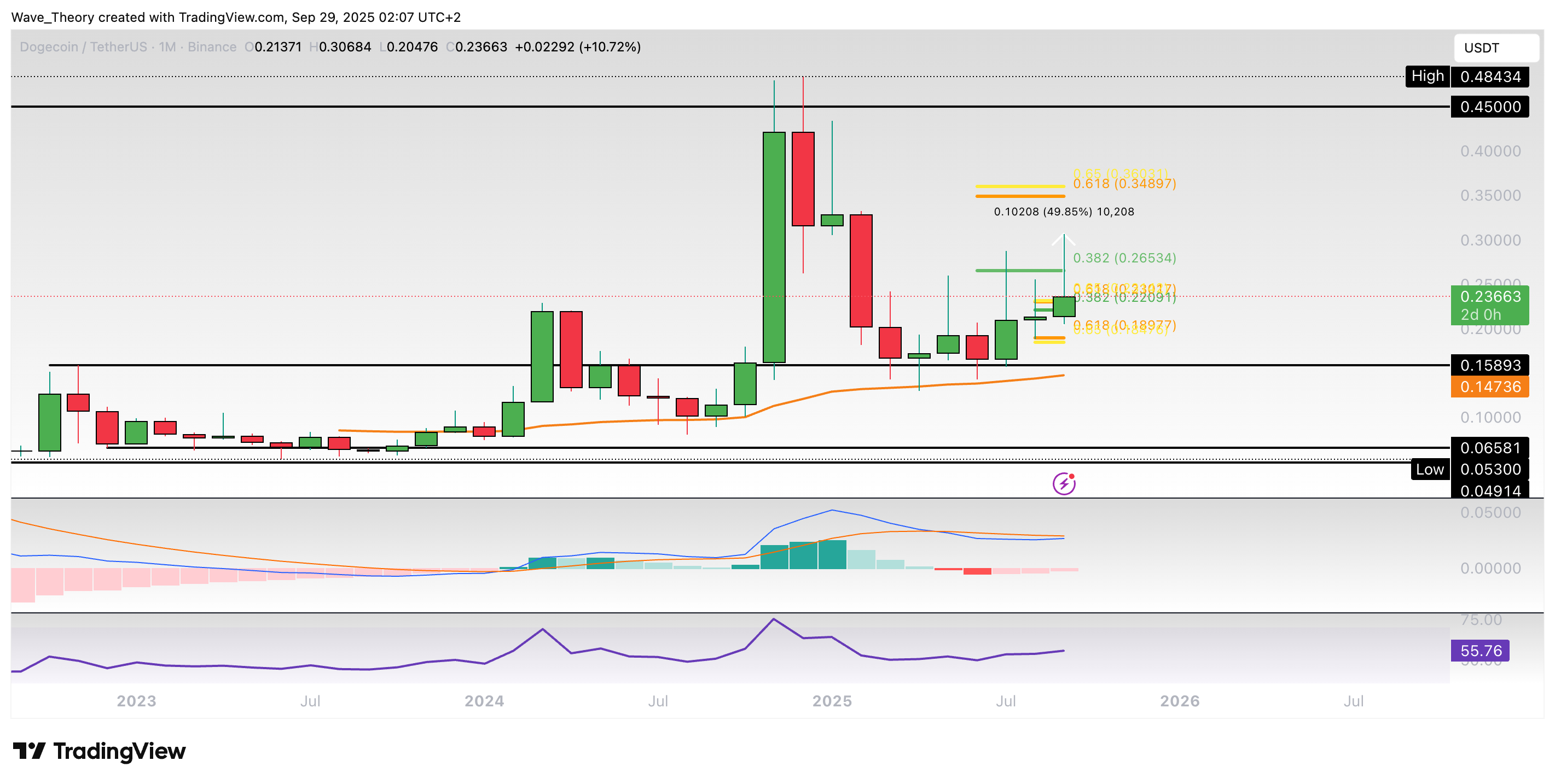 Erst dann könnte Dogecoin zum Hochpunkt bei rund 0,483 USD zurückkehren.