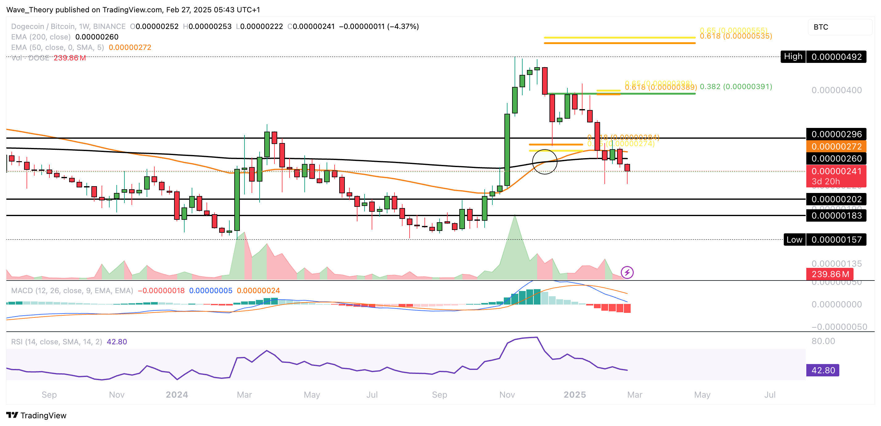 Gegen Bitcoin hat der Dogecoin Kurs die Golden Ratio Unterstützung bereits gebrochen