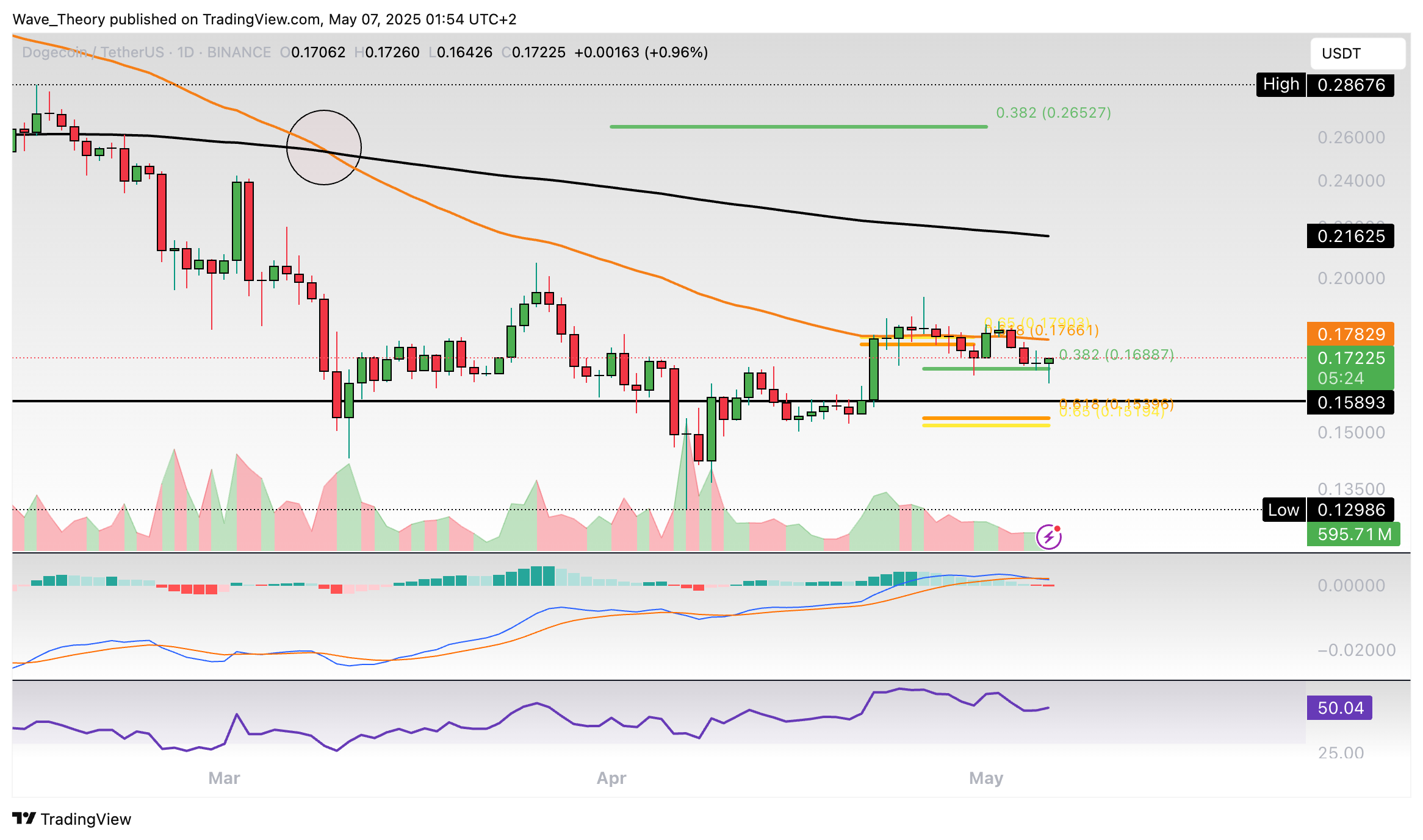 Dogecoin-Prognose für Mittwoch, 07. Mai 2025: Der Dogecoin Kurs hat kritische Unterstützung erreicht. Kann der Kurs jetzt bullisch abprallen?