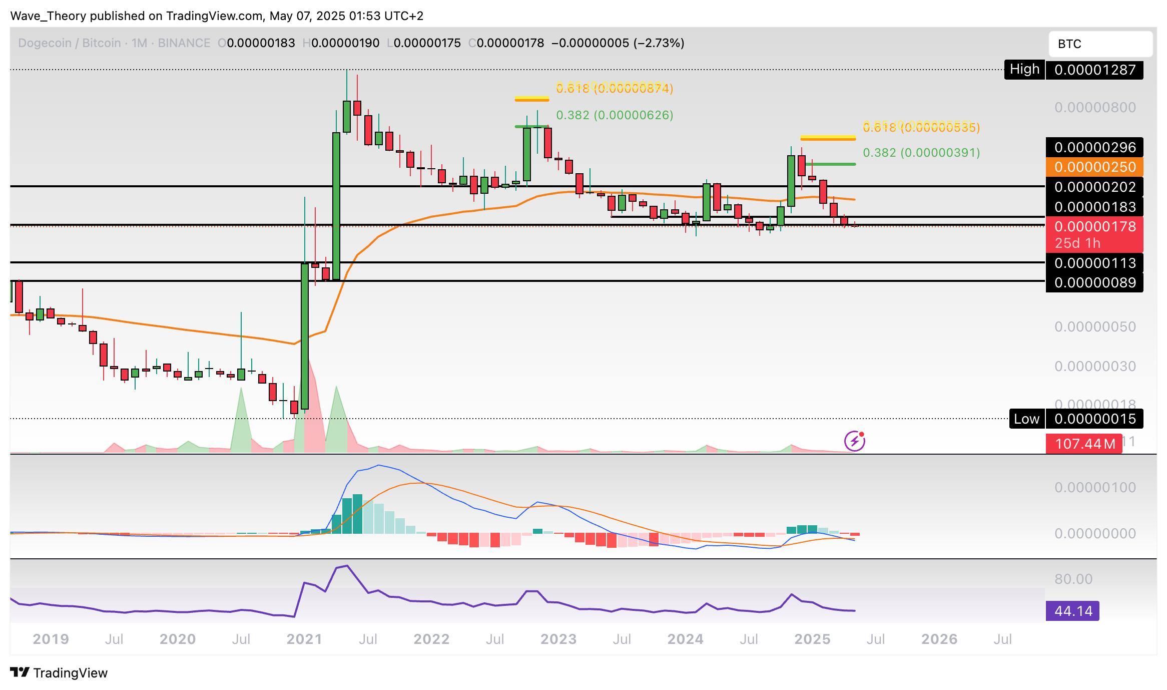 Sponsored SponsoredNach oben hin wartet am 50-Monate-EMA bei rund 0,0000025 BTC der nächste signifikante Widerstand. Die Indikatoren zeigen sich aber eher bärisch.