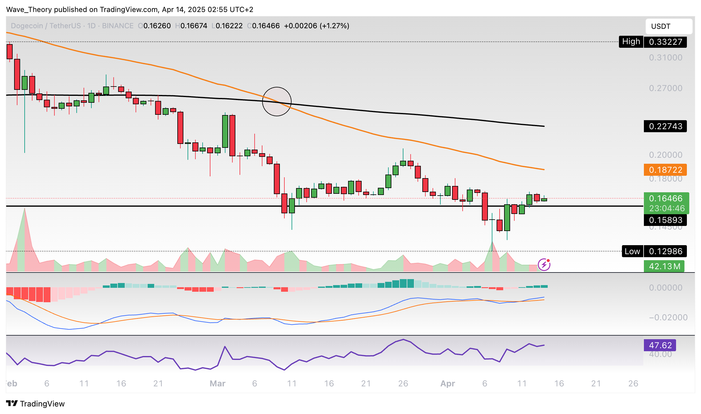Dogecoin-Prognose für Montag, 14. April 2025: Dogecoin Kurs ist bereits über 73 % gefallen. Wann endet die Korrektur?