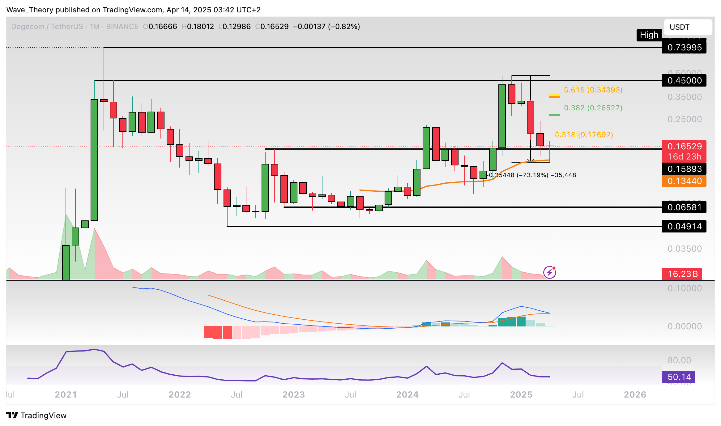 Dogecoin hat jetzt die 50-Monate-EMA Unterstützung bei rund 0,1334 USD erreicht, woran der Kurs bullisch abzuprallen scheint. Nichtsdestoweniger sind die MACD Linien jetzt im Begriff, sich bärisch zu kreuzen.